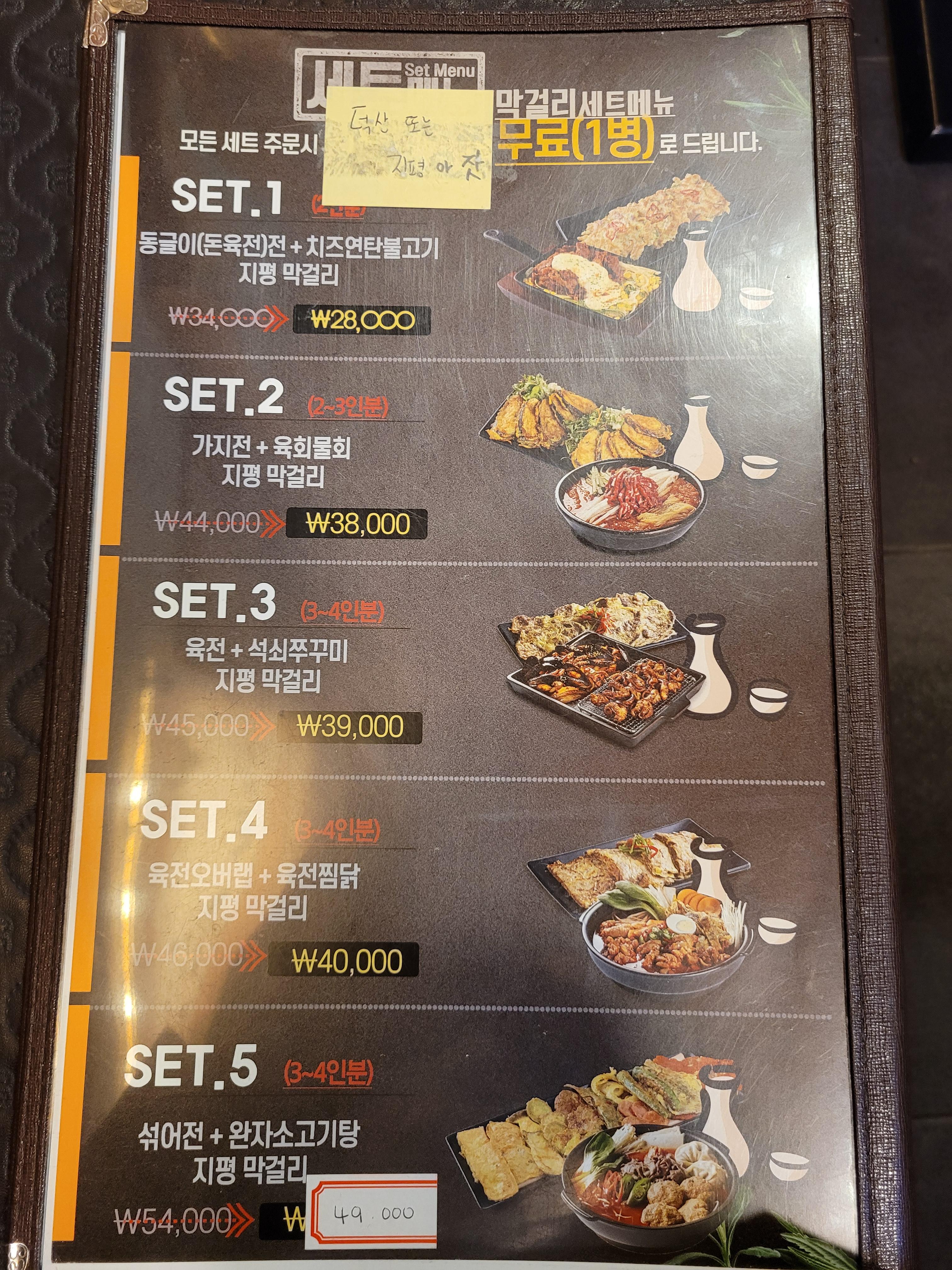 2명이 세트메뉴 하나, 막걸리, 육전냉면 하나, 푸짐하고 배부르게 먹어도 5만원 안팎이니 적정한 가격이다.