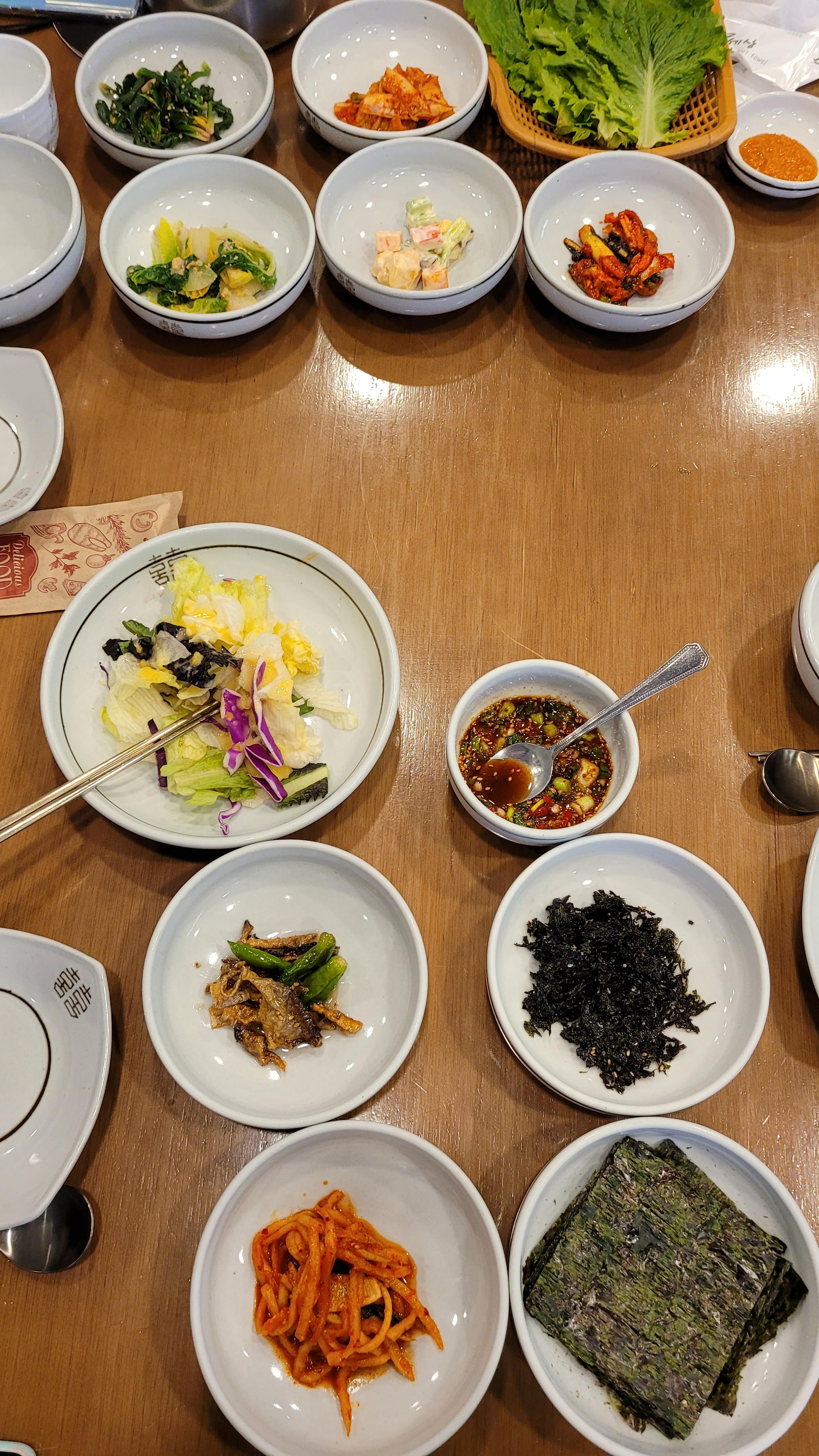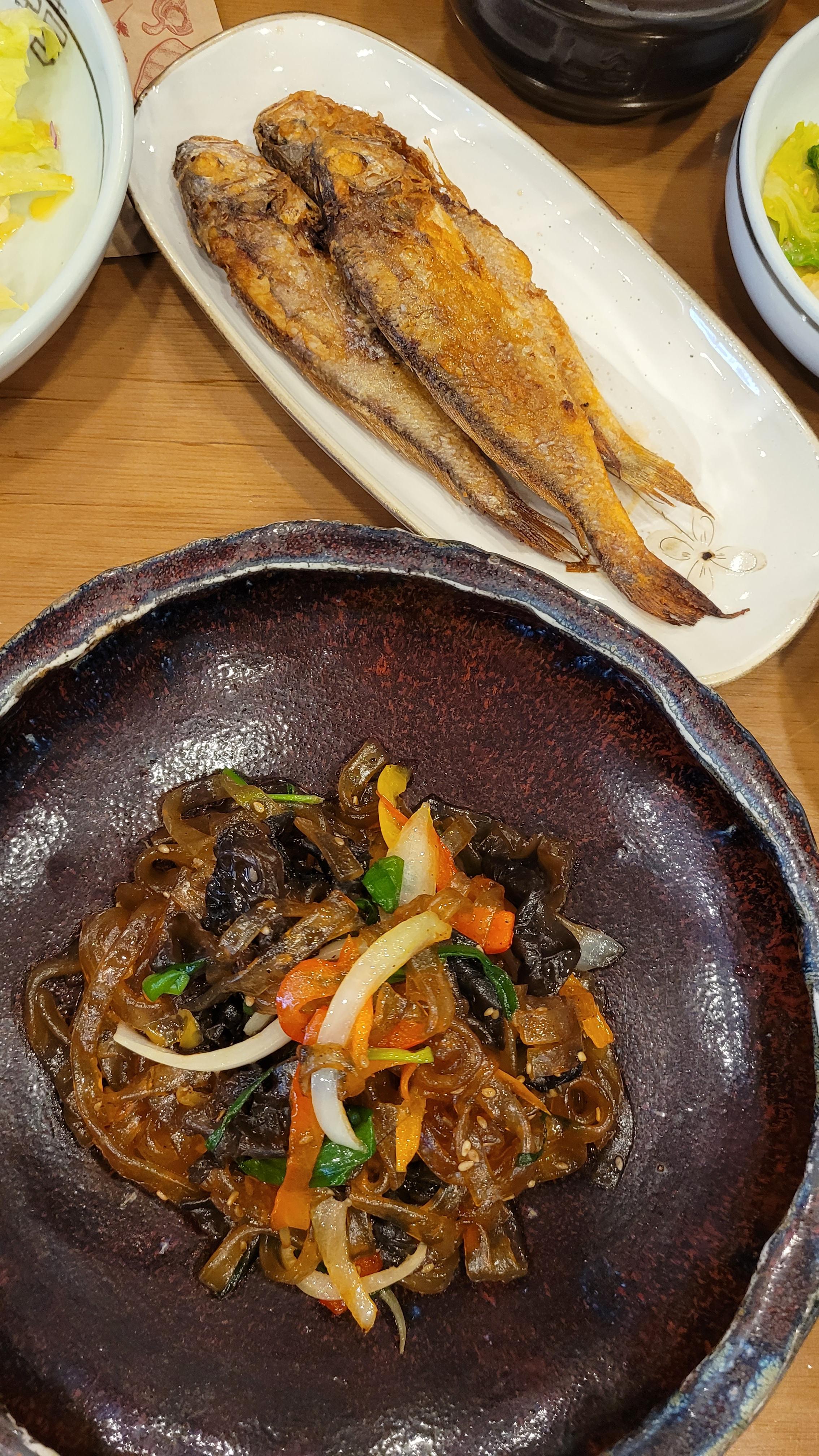 여러 나물, 잡채(지난번에는 일반 당면인거 같았는데, 넓은 중국 당면이었다. 개인적으로 넓은 당면발을 더 좋아해서 한번 더 달라고 해서 먹었다.), 조기, 샐러드 등 한두개 반찬은 바뀐거 빼고는 2개월전과 같았다.