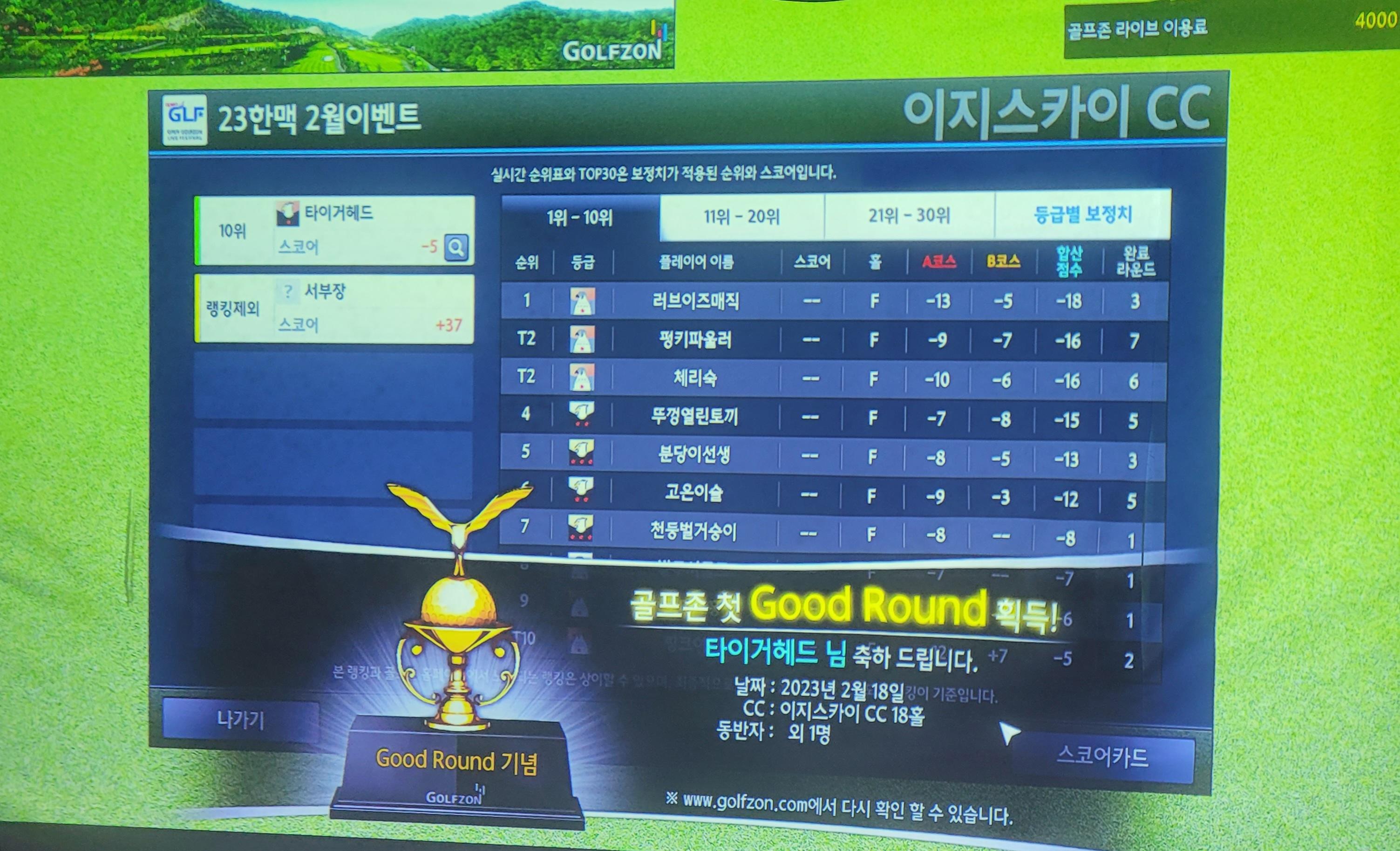 실제 라운딩에서는 절대 불가능한 일이지만, 스크린에서는 가능할 것 같아 달성하고 싶었던 것이 perfect game(no boggy play, good round) 이었다.
