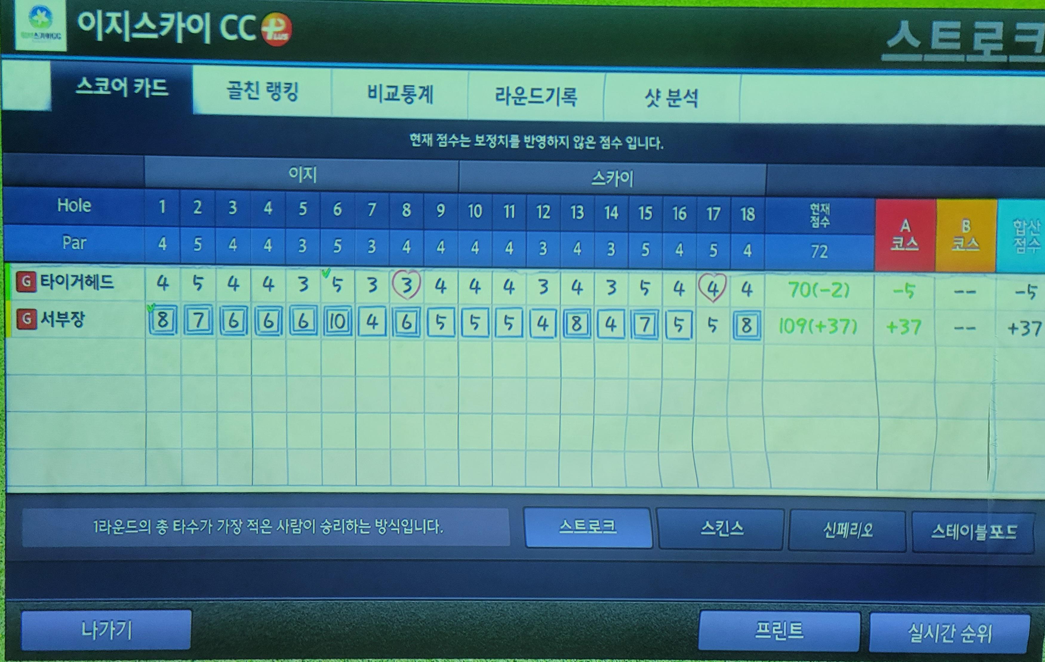 이번 주도 토요일 10시로 예약을 했는데, 회사 영업대표인 서모부장이 일이 있어 근처에 온다고 같이 스크린을 치자고 해서 오늘은 2인 플레이로 플레이를 했다.