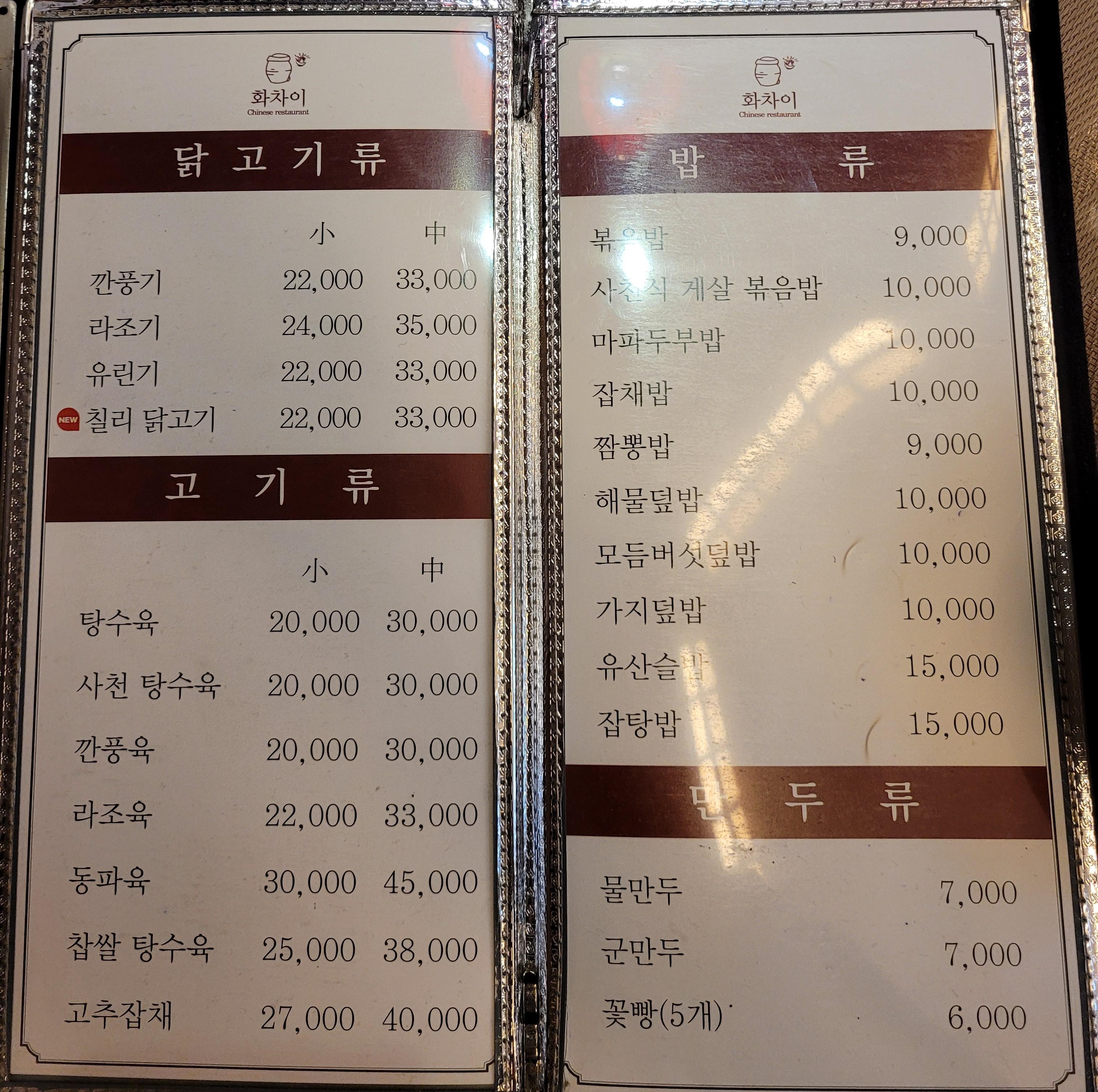 - 탕수육(소) : 20,000원, 깐풍기(소) : 22,000원, 고추잡채(소) : 27,000