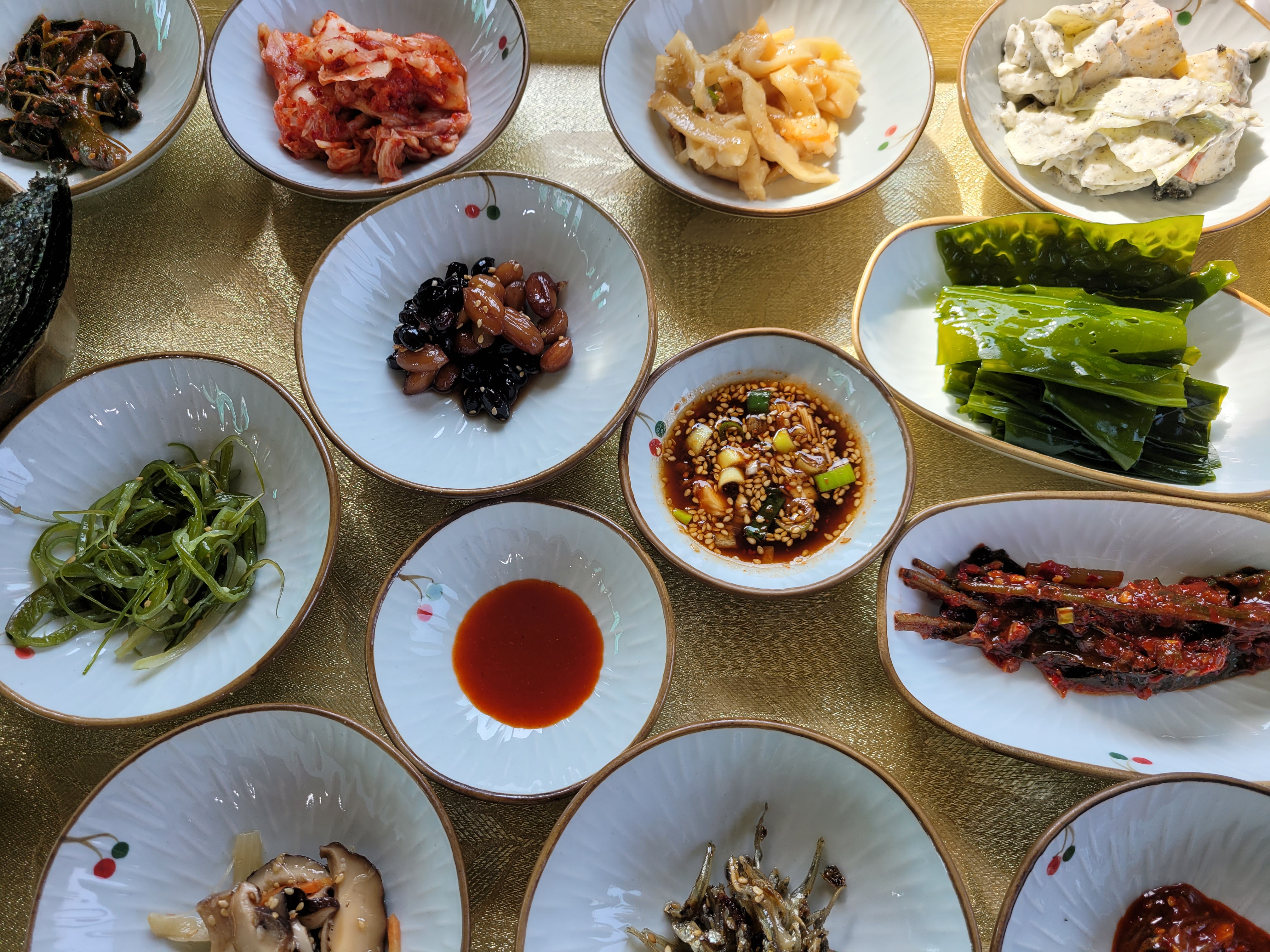 특히 나는 다시마를 초장에 찍어먹는 것을 좋아한다. 깻잎인지 콩잎인지 무침도 맛있었다.