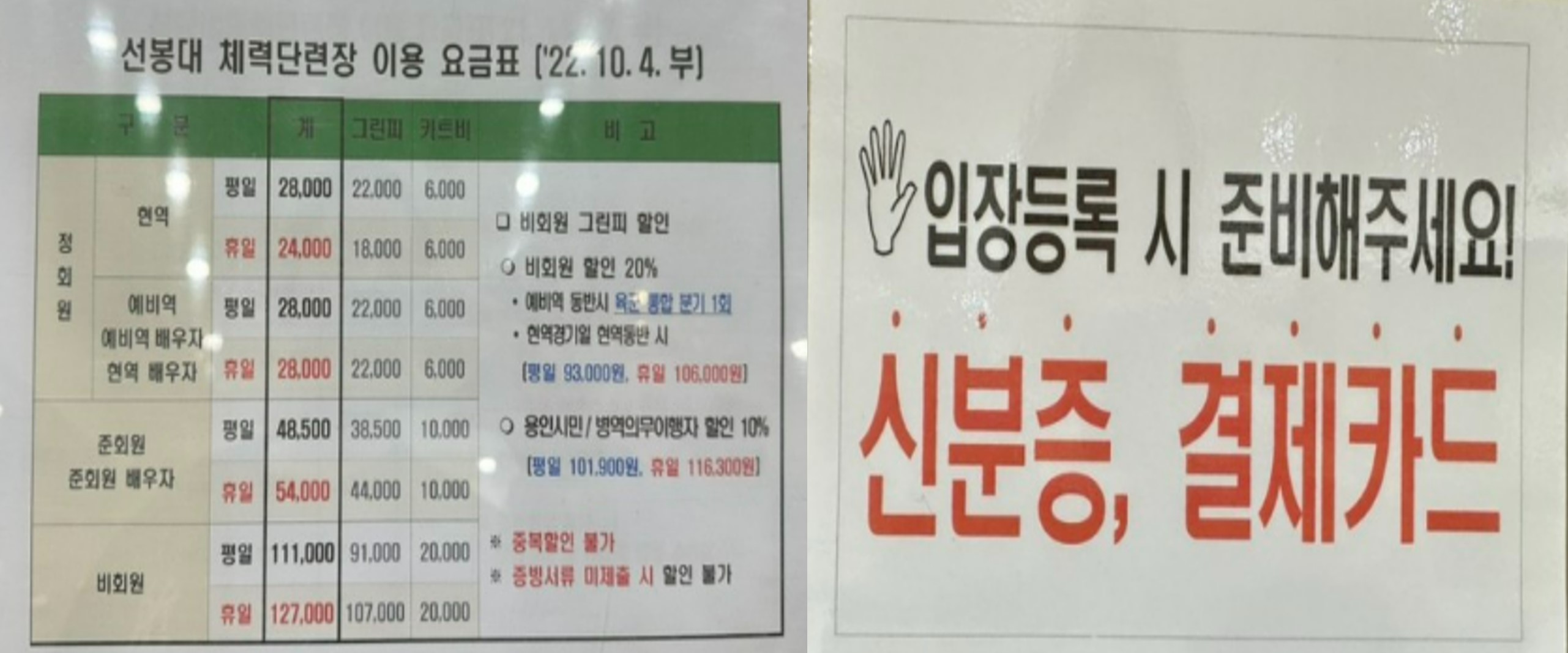 ㅇ 현역 동반, 병역의무자, 용인시민 할인도 있다. 난 현역동반 할인으로 10만6천원으로 플레이했다.