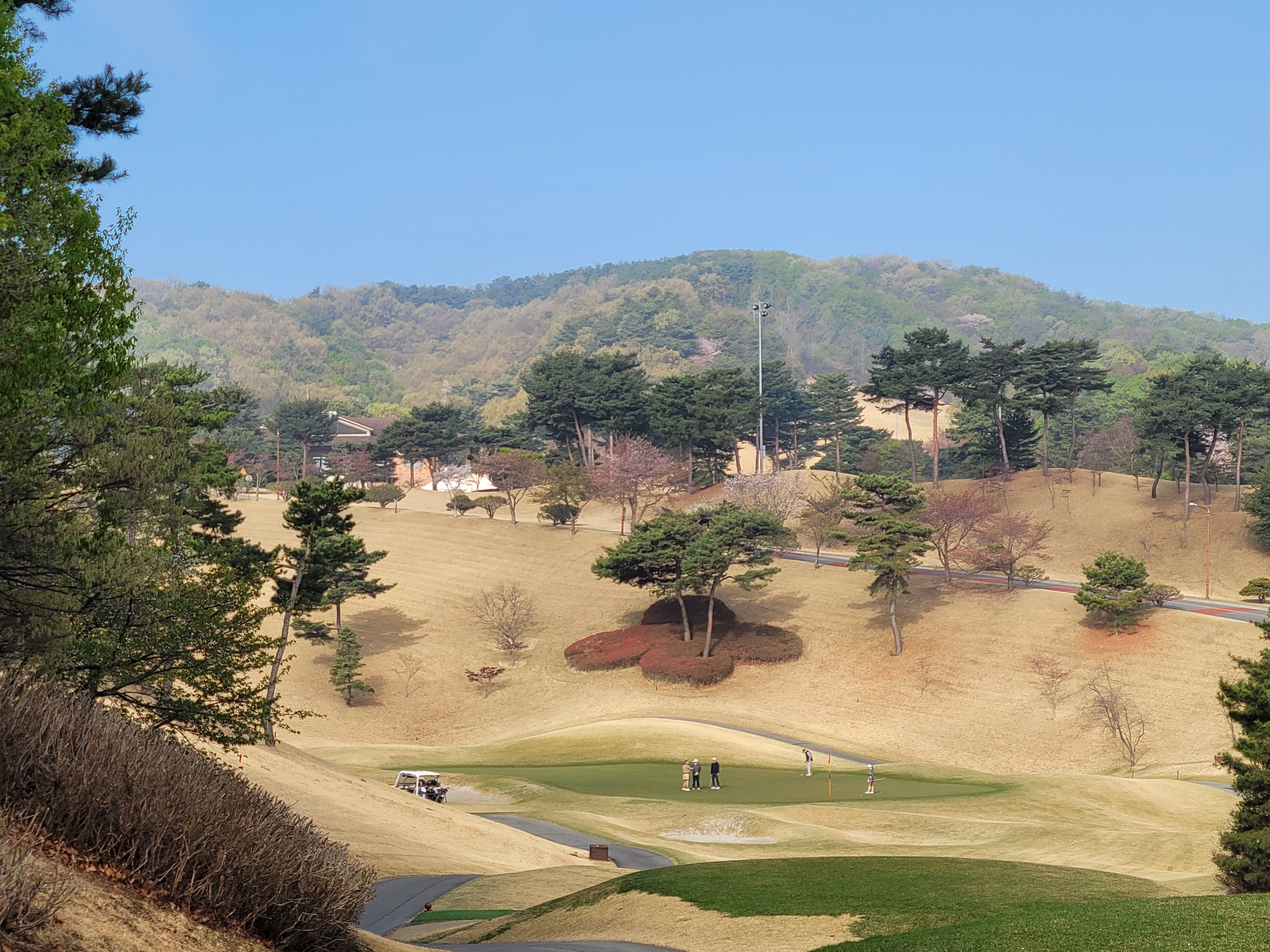 - 아직 잔디가 완전히 올라와 있지 않지만, 잔디의 촘촘함이 자주 가는 여주쪽 골프장보다 많이 떨어진다. 산 기슭에 골프장을 만들어서 대부분이 좁고, 언듈레이션이 심했다. 페어웨이에 잘 보내도 스윙하기가 어려웠다. 초대 아니면 다시 방문하지는 않을 것 같다.