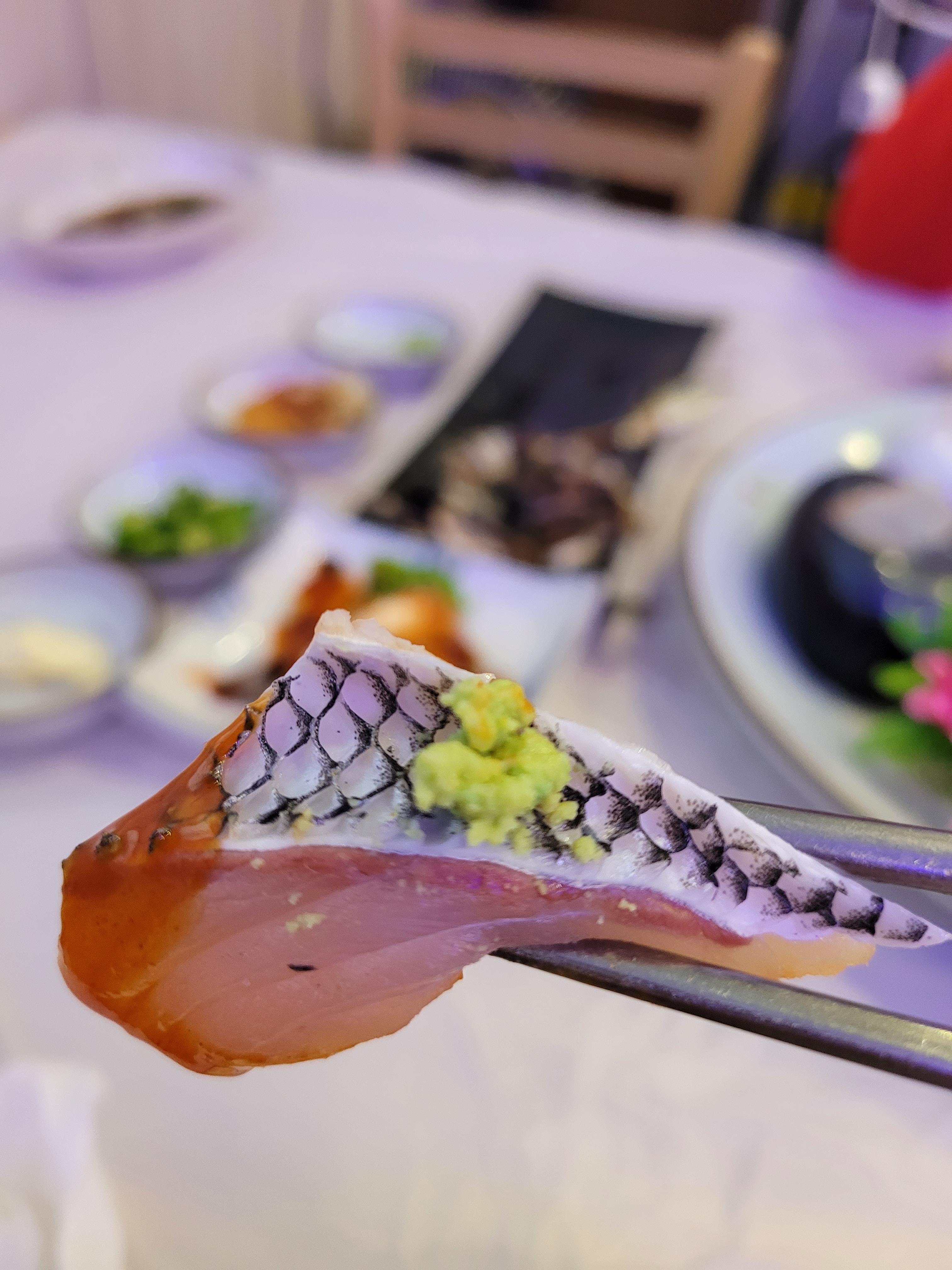 해산물은 신선하고, 튀김 등 주변 반찬은 바삭거리고 맛있었다. 쫄깃한 회를 먹고 매운탕까지 완벽한 저녁식사였다. 차를 가지고 갔기 때문에 소주를 못 마신게 흠이었다.