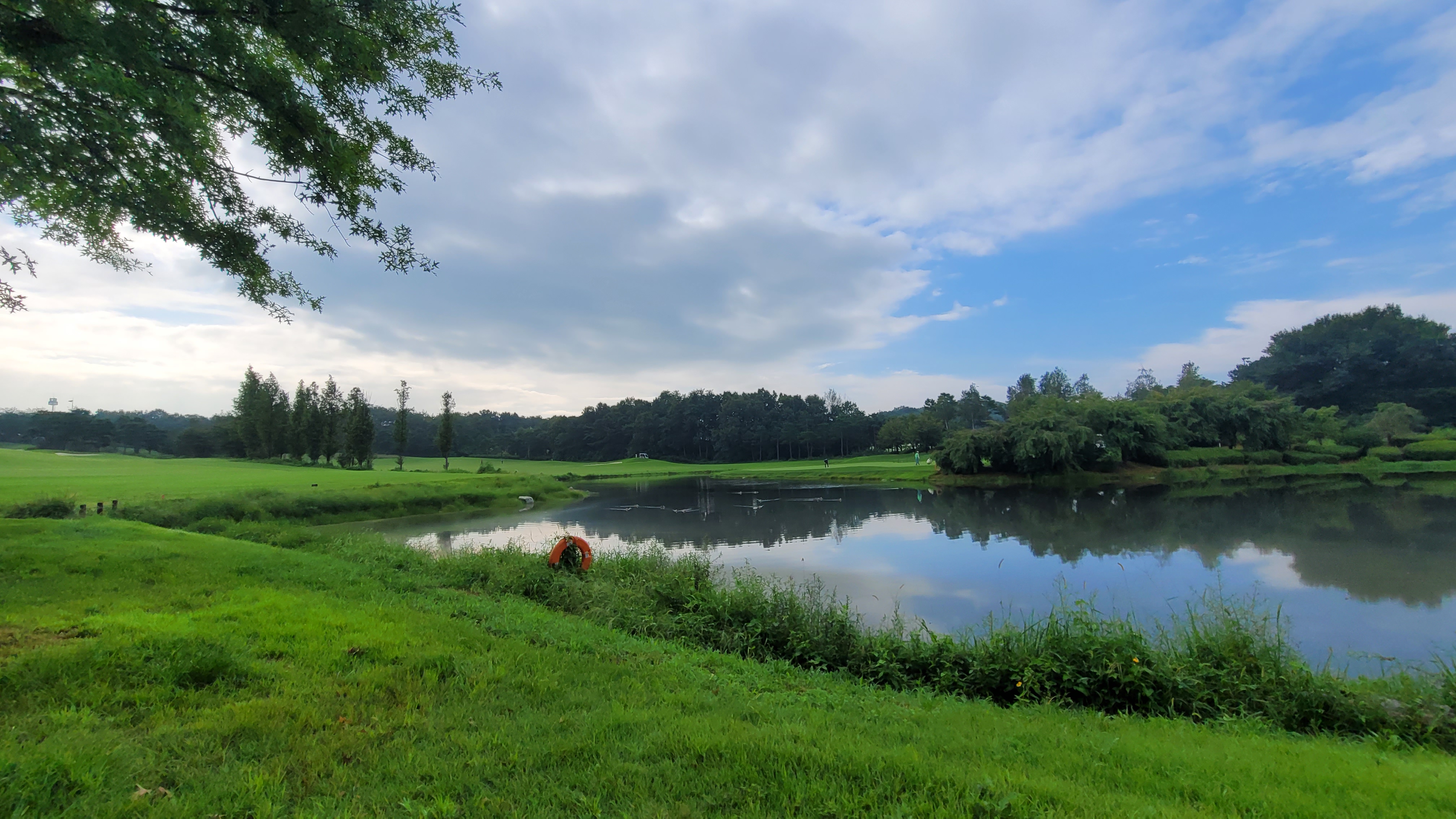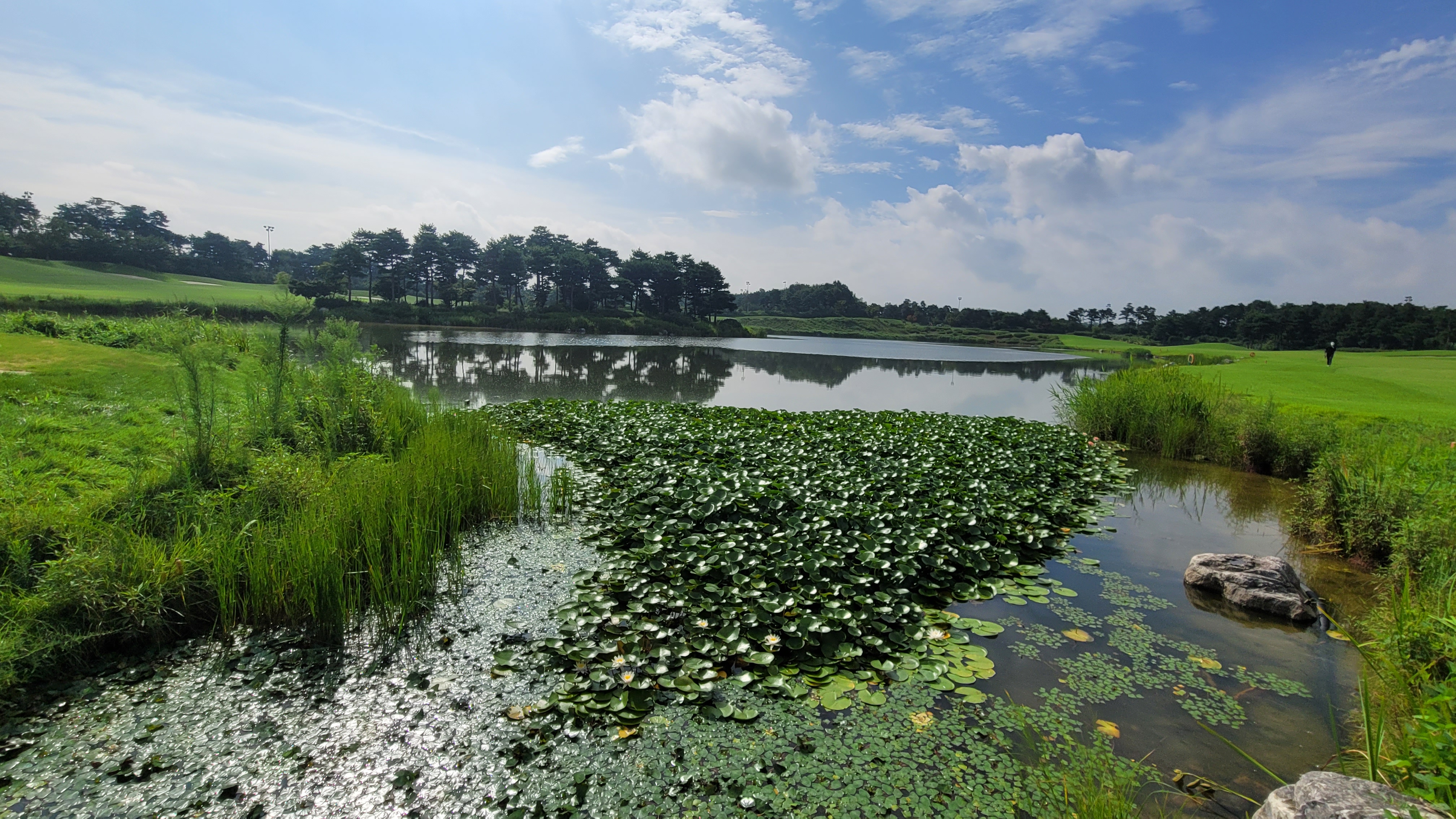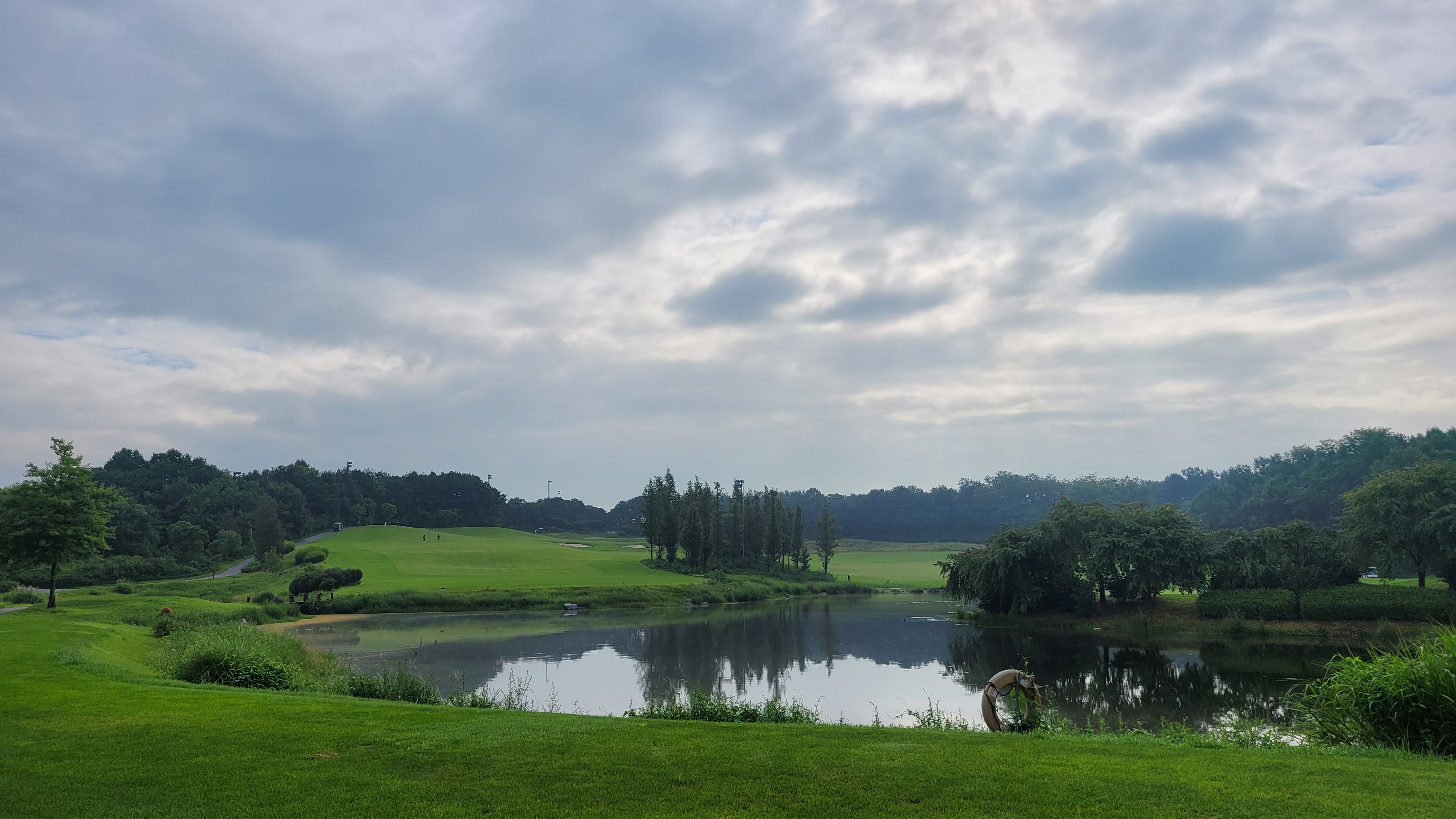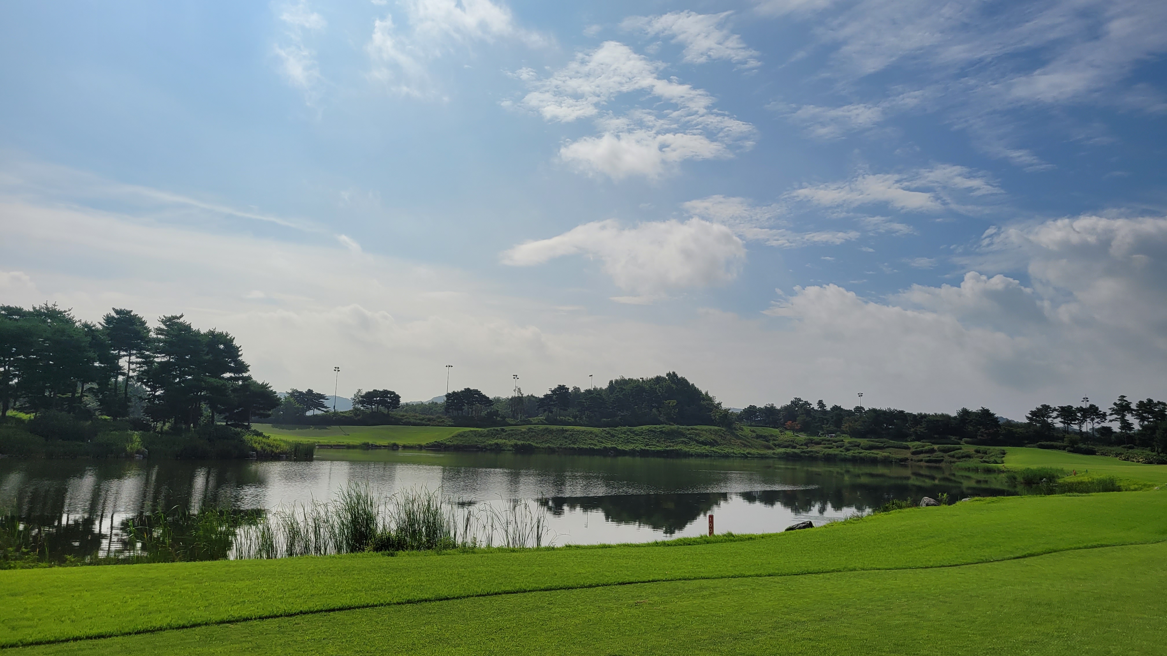 - 나무가 없었습니다. 오래된 골프장인줄 알고 왜 나무가 없을까 하고 물어봤더니 10년밖에 안된 골프장이었습니다. 헤저드인 연못과 하늘, 구름이 어우러져서 예쁜 곳도 있었는데 크고 오래된 나무가 별로 없어서 조경은 뛰어나지 않았습니다.