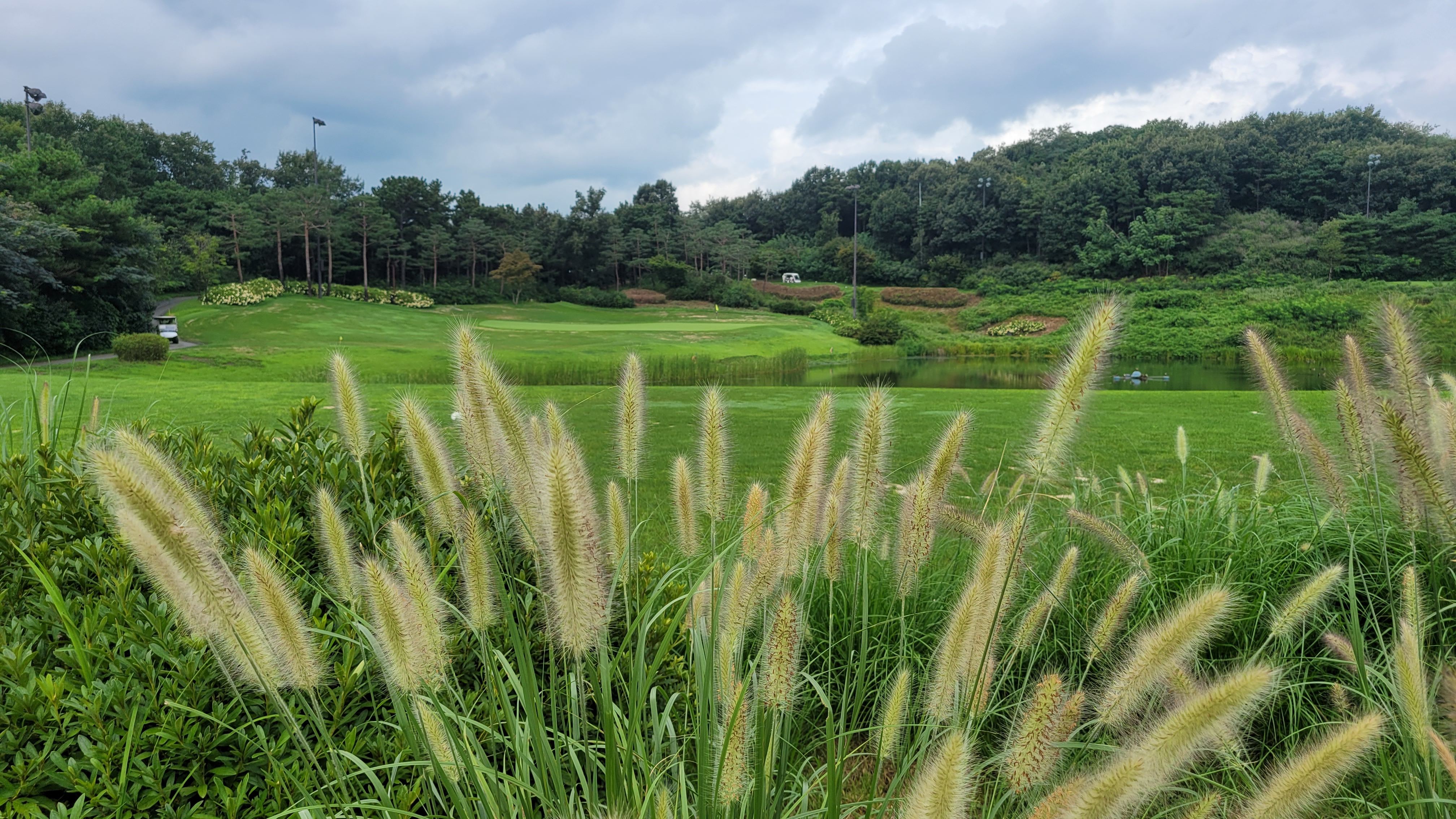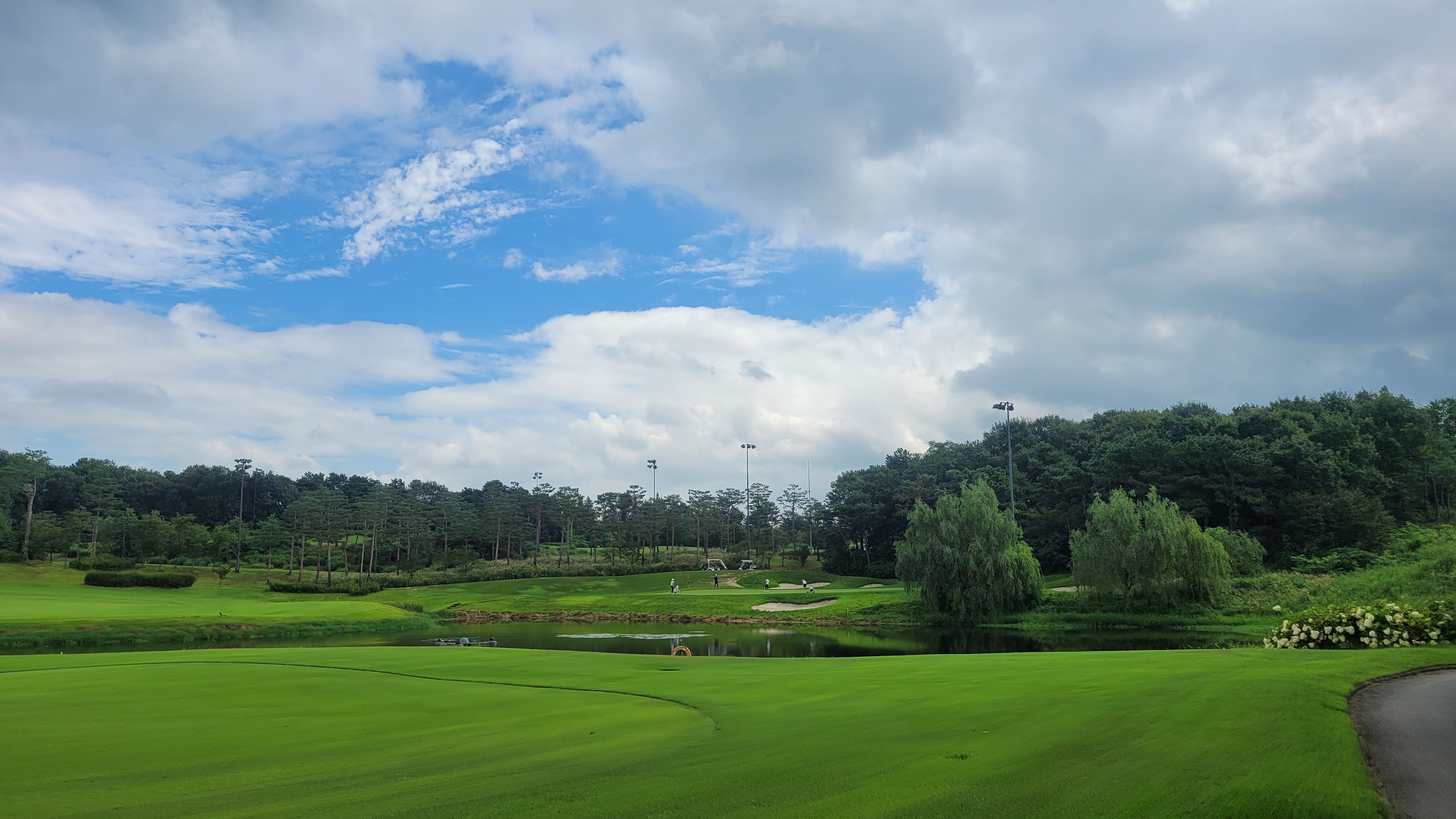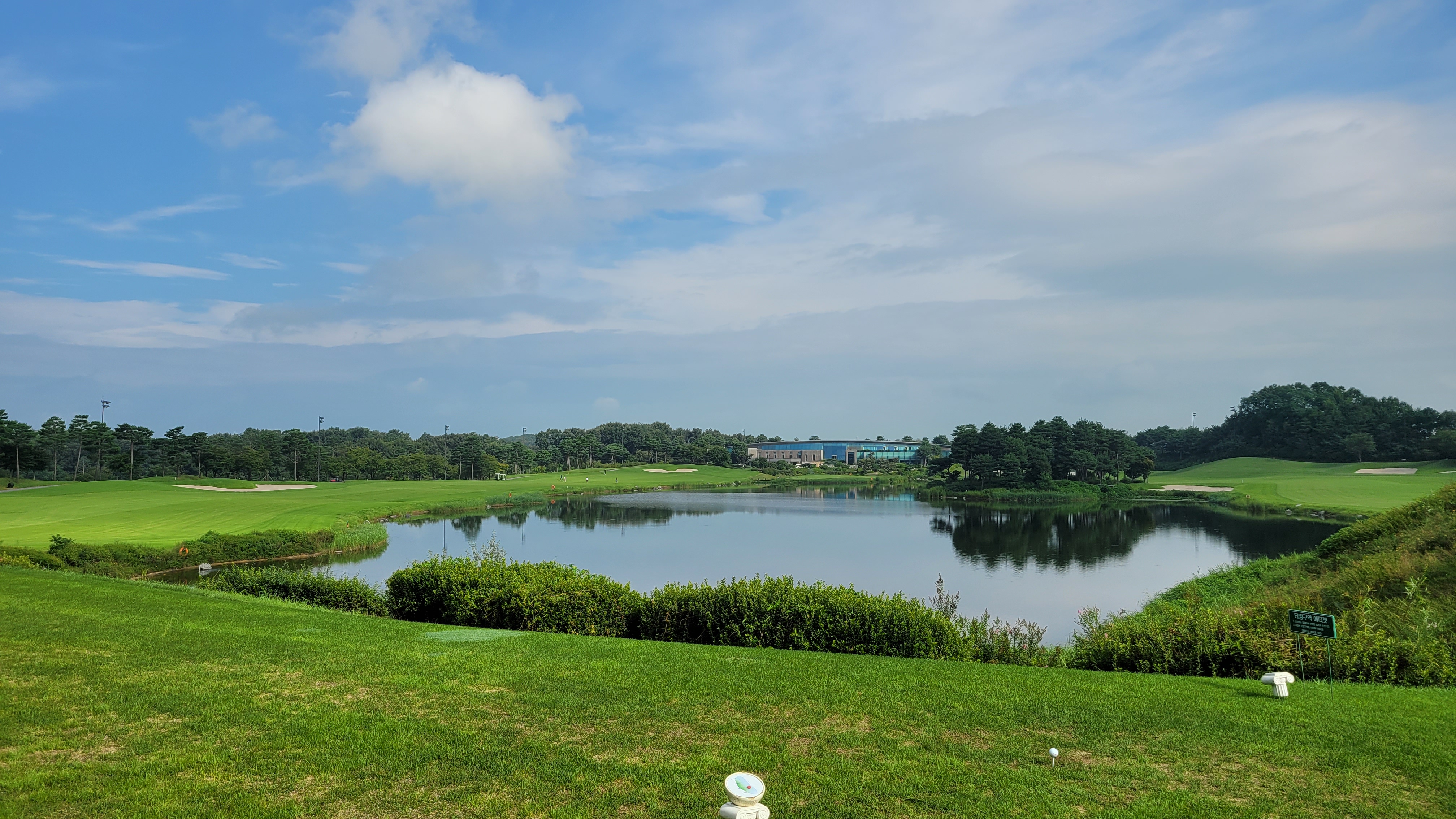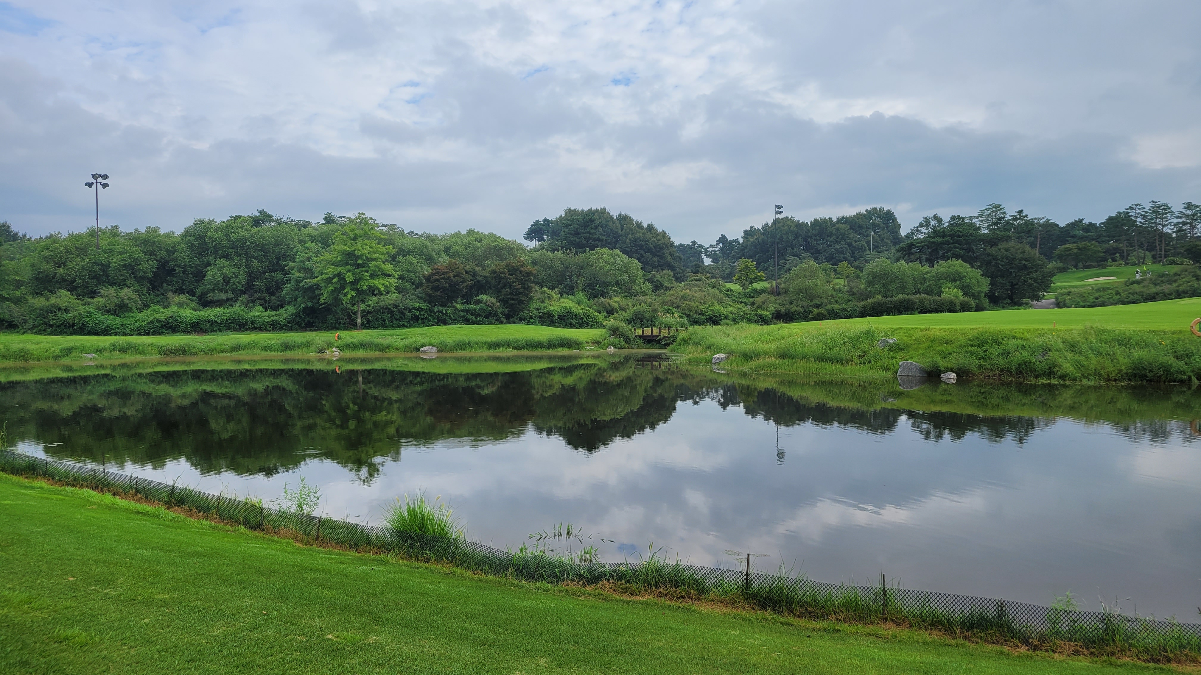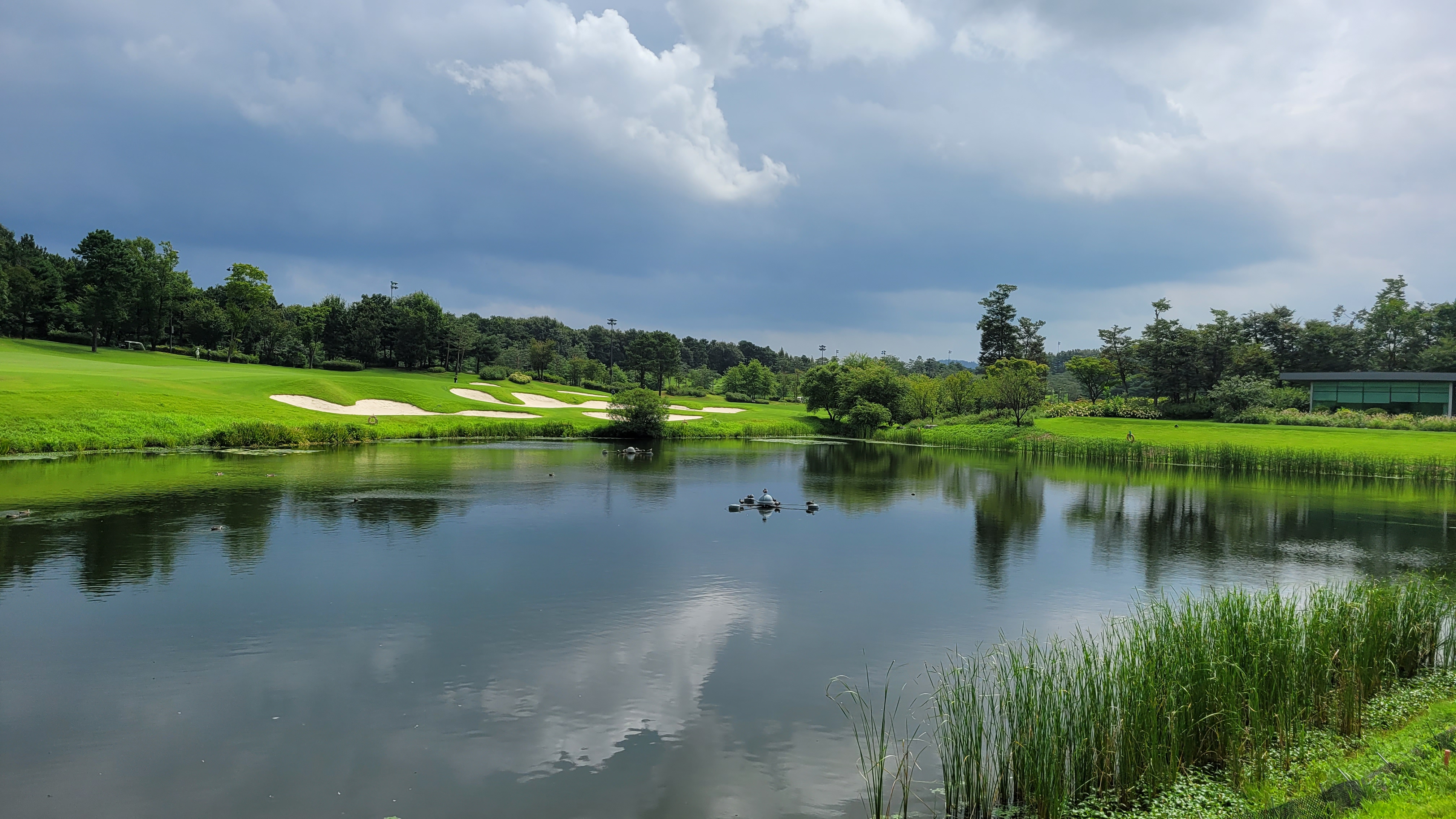 - 나무가 없었습니다. 오래된 골프장인줄 알고 왜 나무가 없을까 하고 물어봤더니 10년밖에 안된 골프장이었습니다. 헤저드인 연못과 하늘, 구름이 어우러져서 예쁜 곳도 있었는데 크고 오래된 나무가 별로 없어서 조경은 뛰어나지 않았습니다.