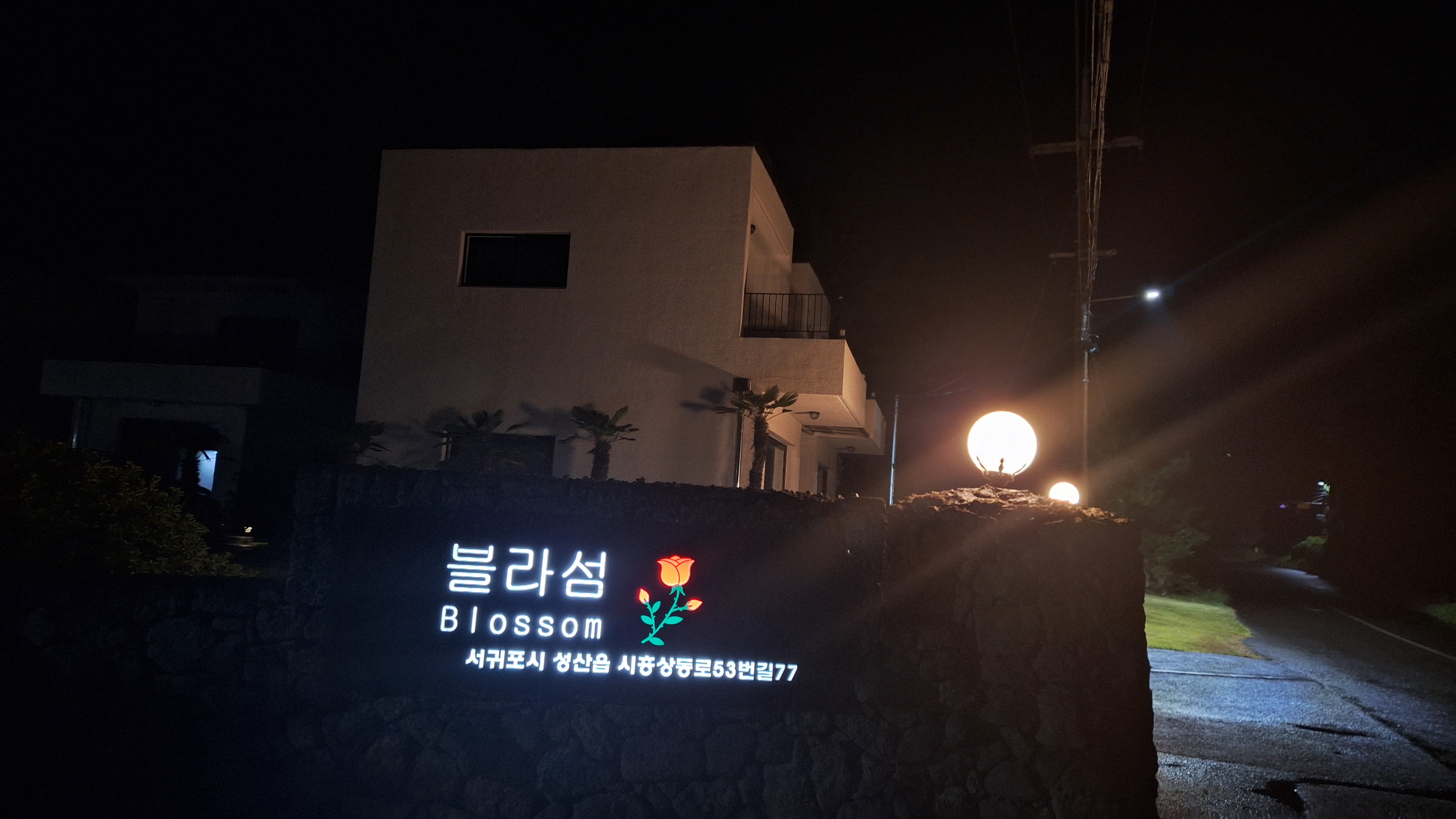 숙소인 블라섬 펜션까지는 걸어서 10분 정도 걸려서 제주 바람을 쐬면서 행복하게 걸어갔다.