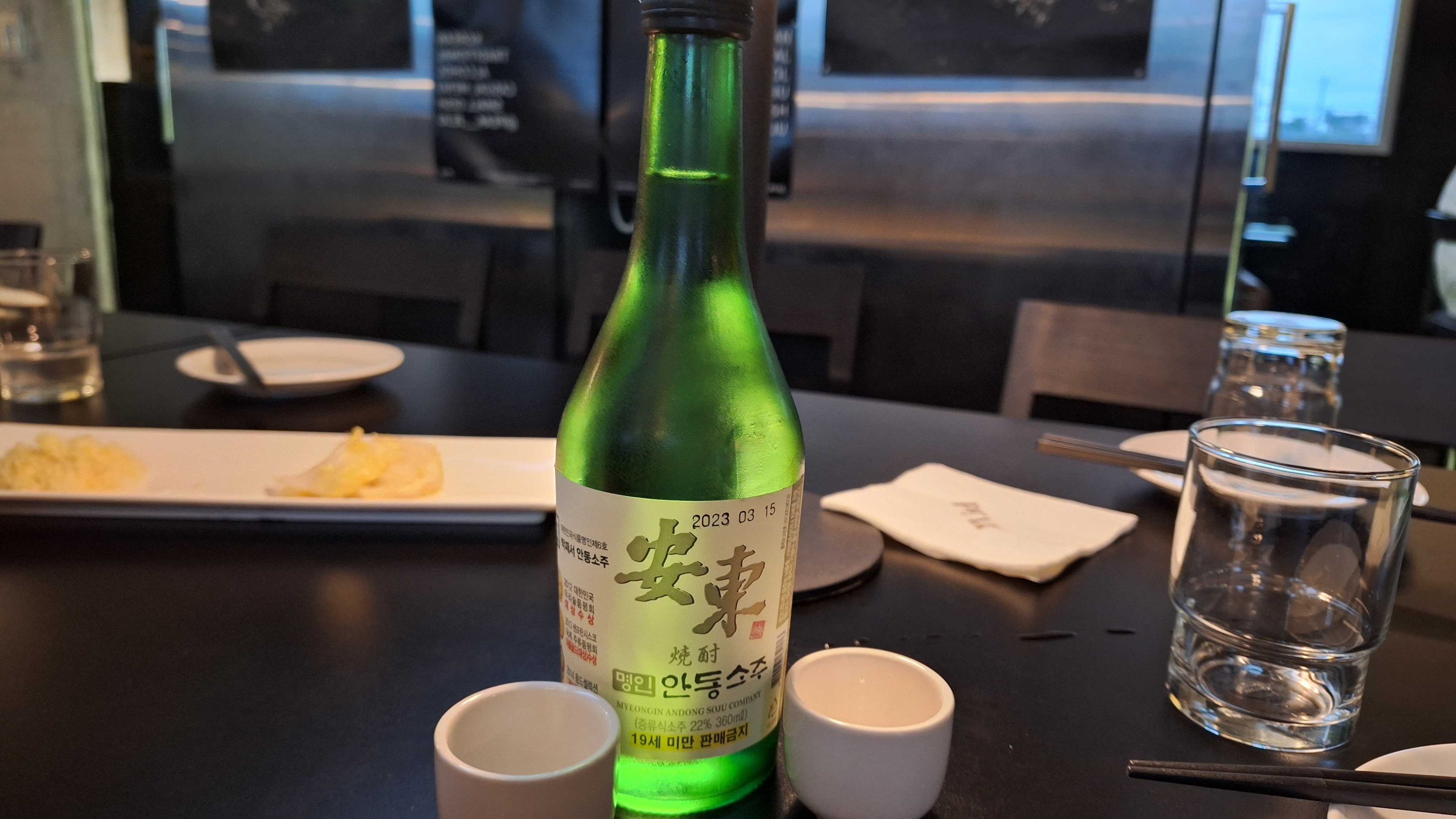 술을 시키려고 메뉴를 보는데, 아뿔사 일반 소주가 없었다. 일반 소주를 좋아하는 동생에게 미안하지만, 적정한 가격의 명인 안동소주(16.0)를 시켰다. 개인적으로 안동소주를 좋아하지만 두병을 마시니 3만6천원 ㅠ