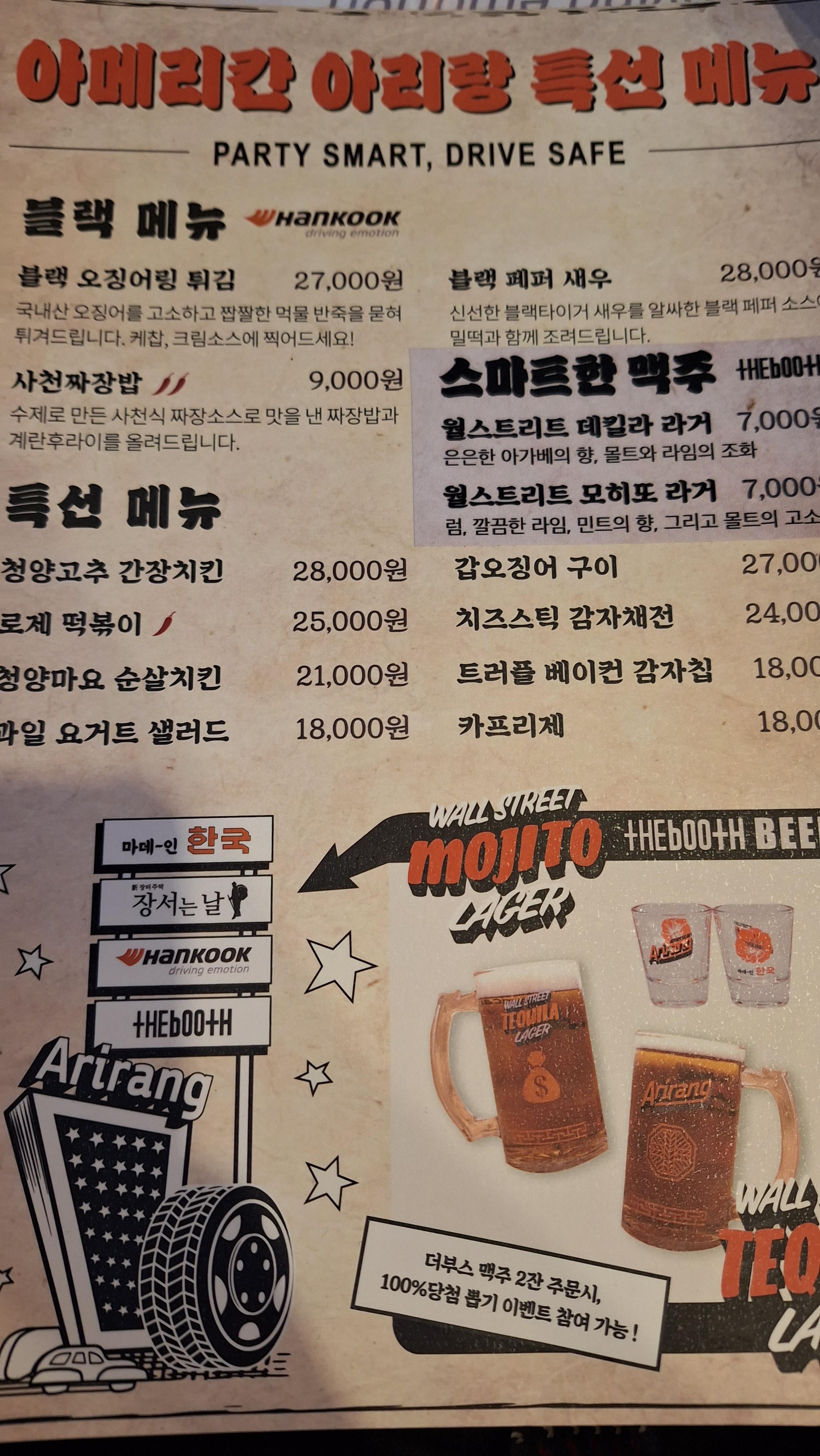 사람들이 많아지기 전에 이용해서인지 3~4개 테이블에만 손님이 있어 조용히 술을 마실 수가 있었다. 실내 인테리어는 이것 저것 관심이 가게 잘 꾸며놓은 것 같다. 식당 이름은 조선시대 이름인데, 실내 인테리어는 지극히 현대적이어서 언발런스하면서 흥미를 갖게하는 내부 분위기였다.