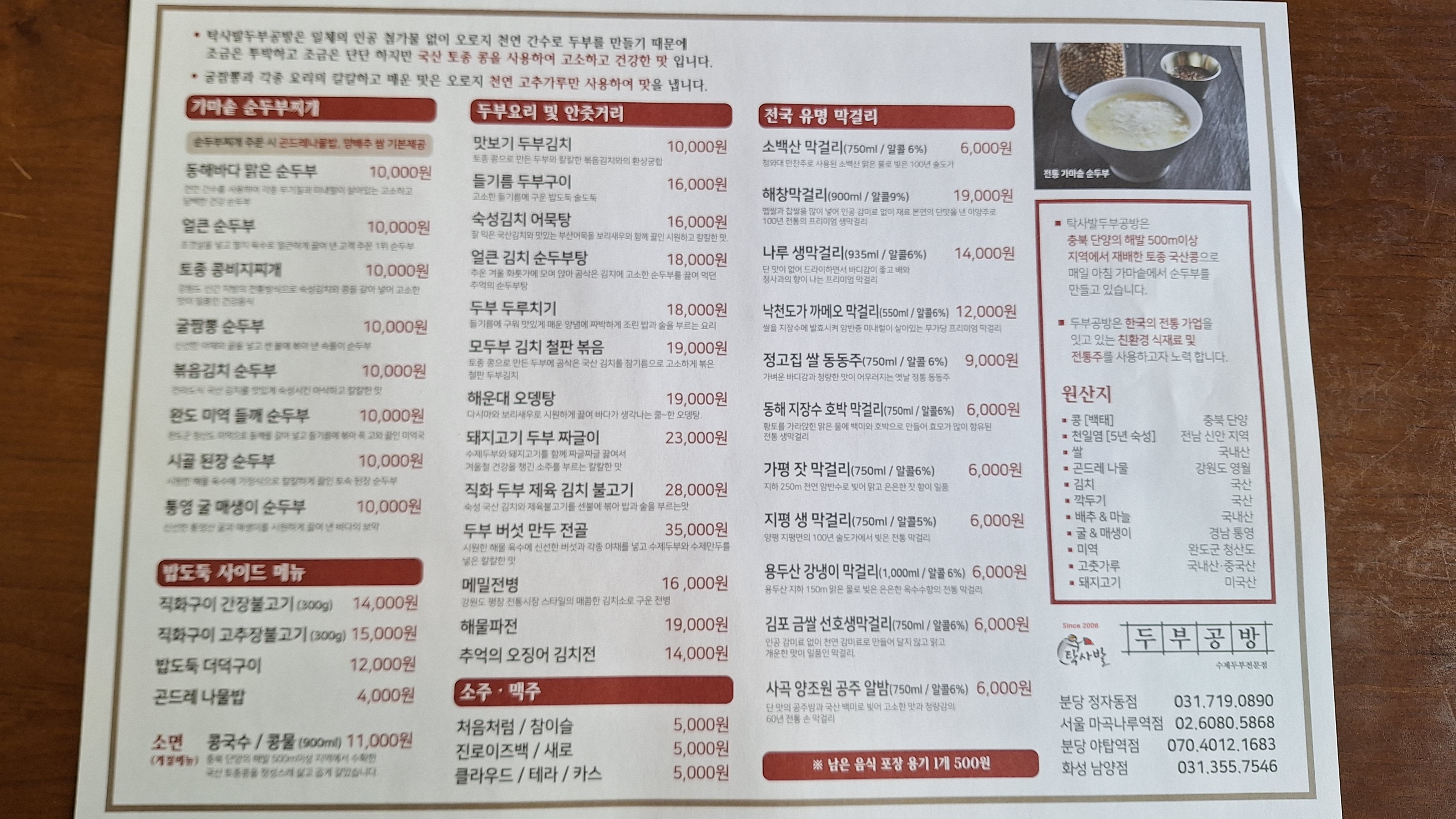 1. 두부공방 분당정자점 소개 (화~일 11:00 ~ 22:00)