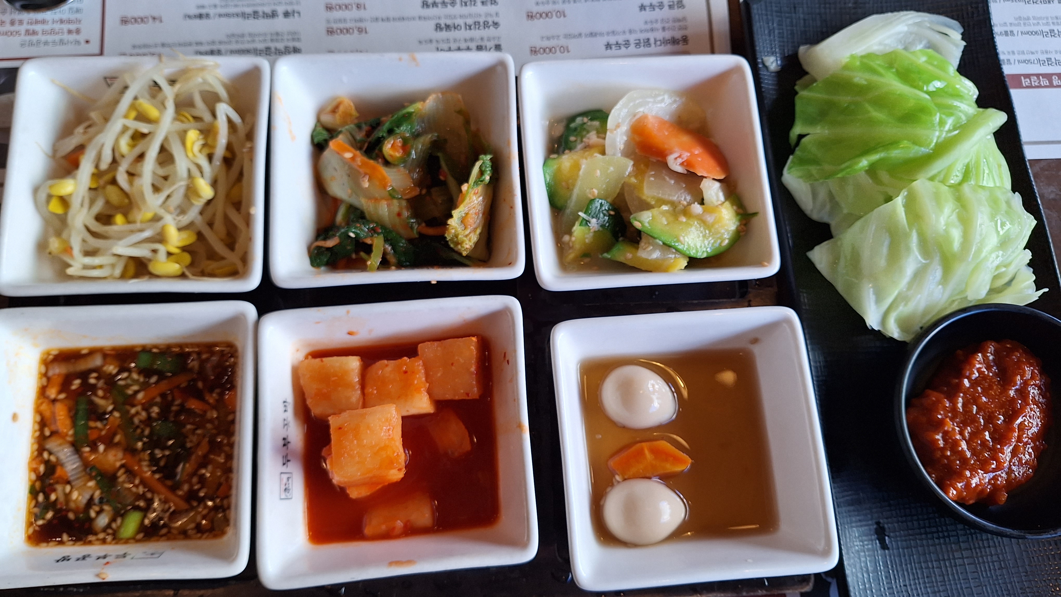 - 한방편육어리굴젓세트(23.0), 모두부 김치 철판볶음(19.0), 두부버섯만두전골(35.0)