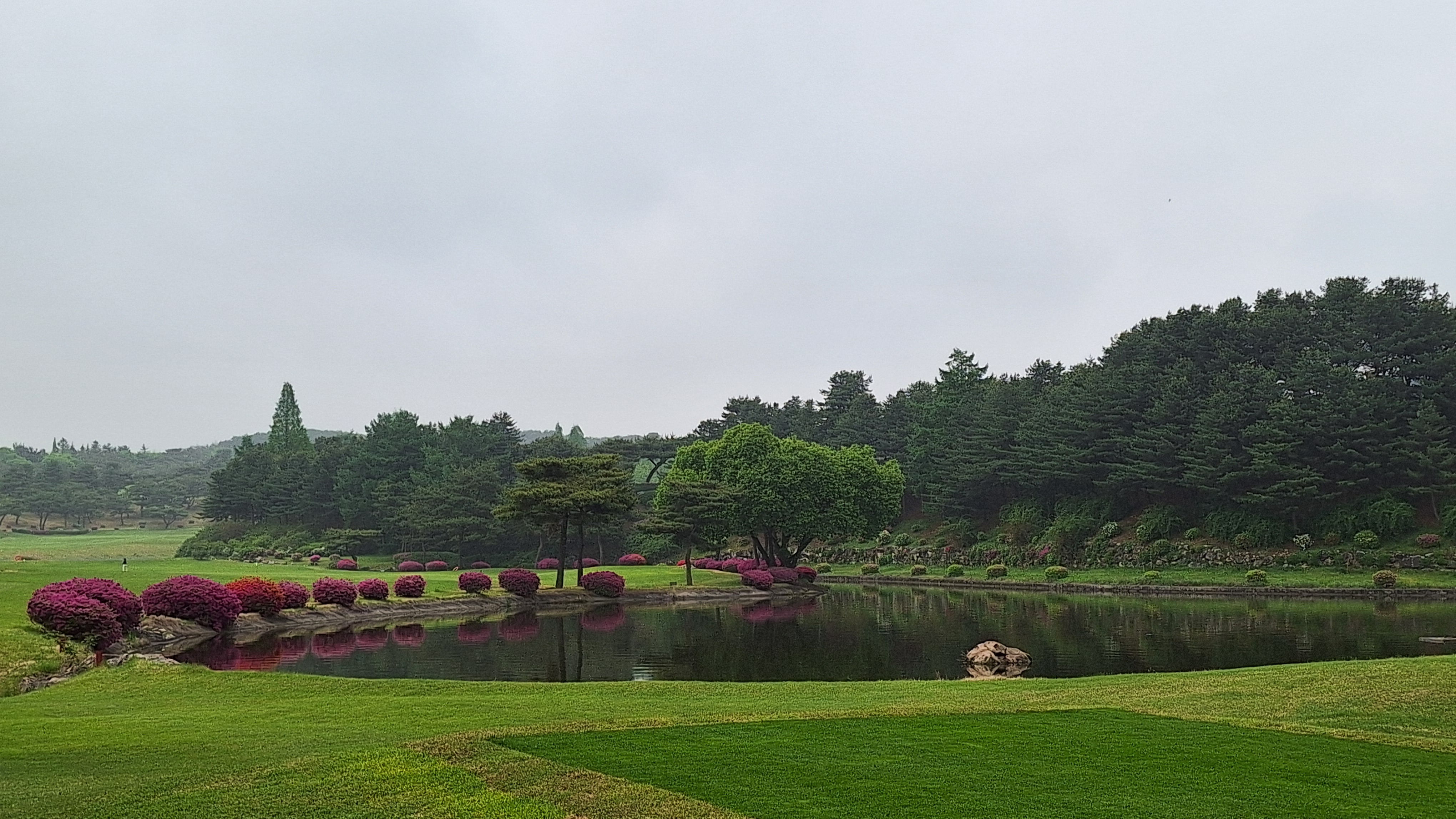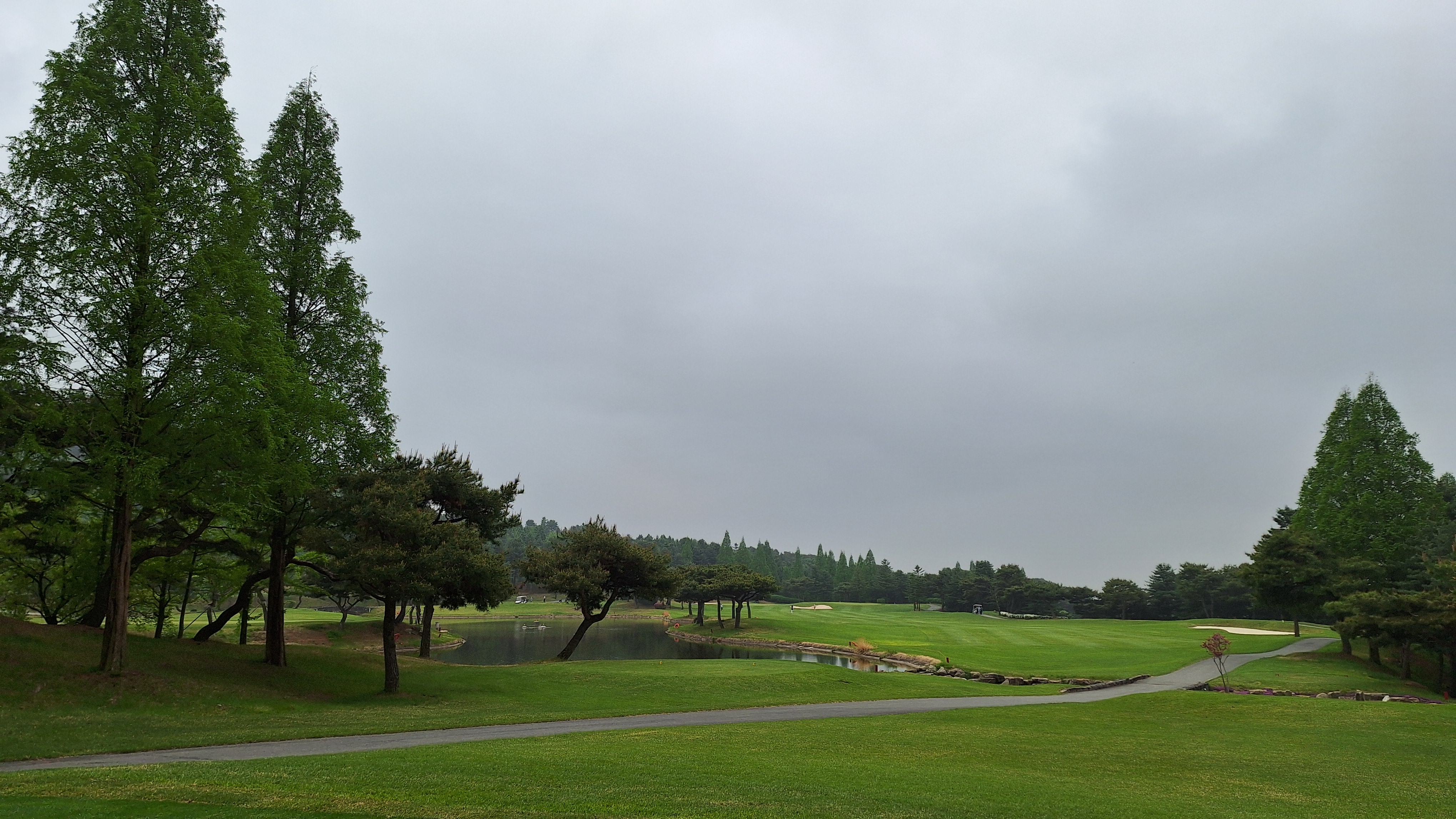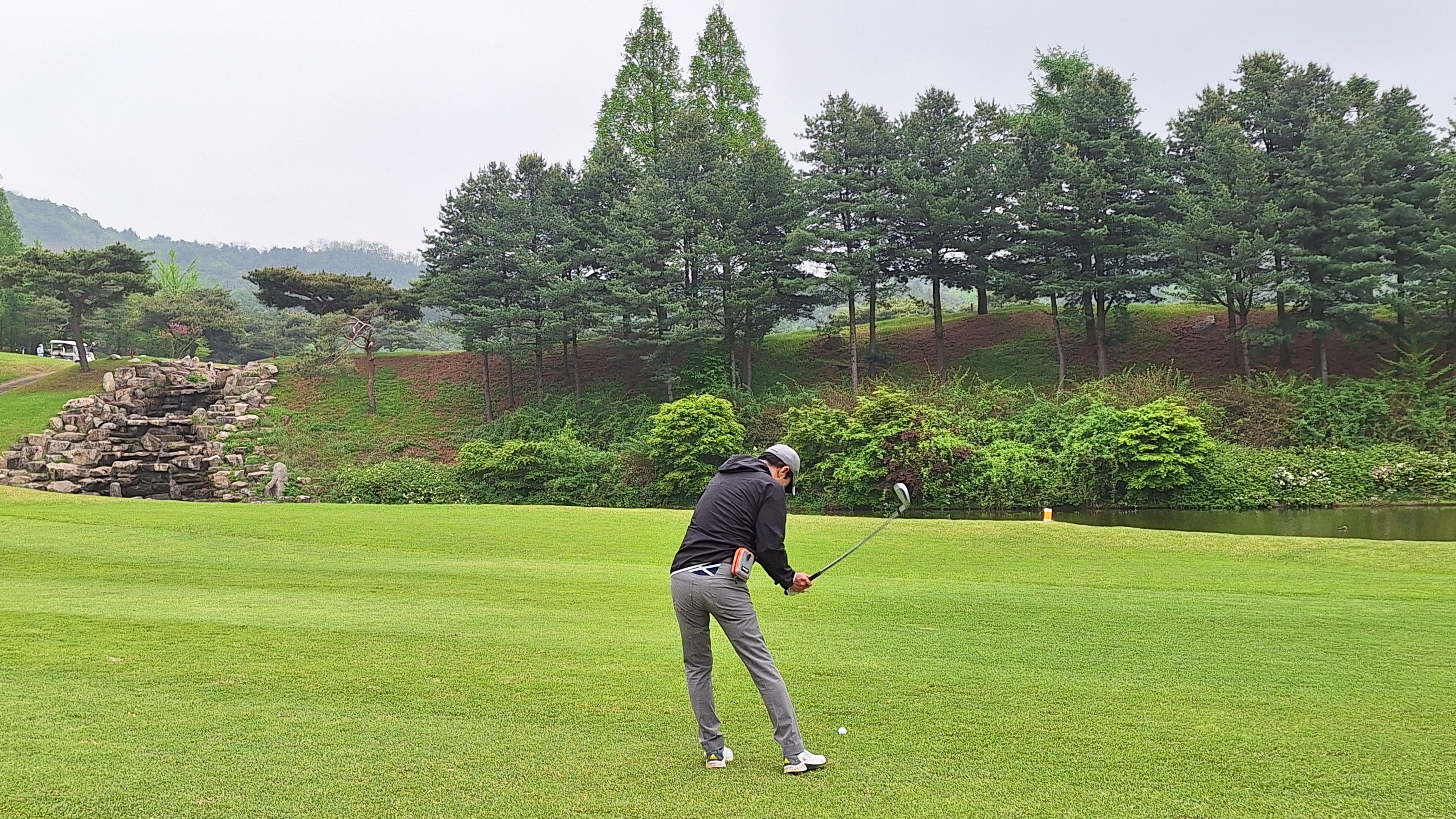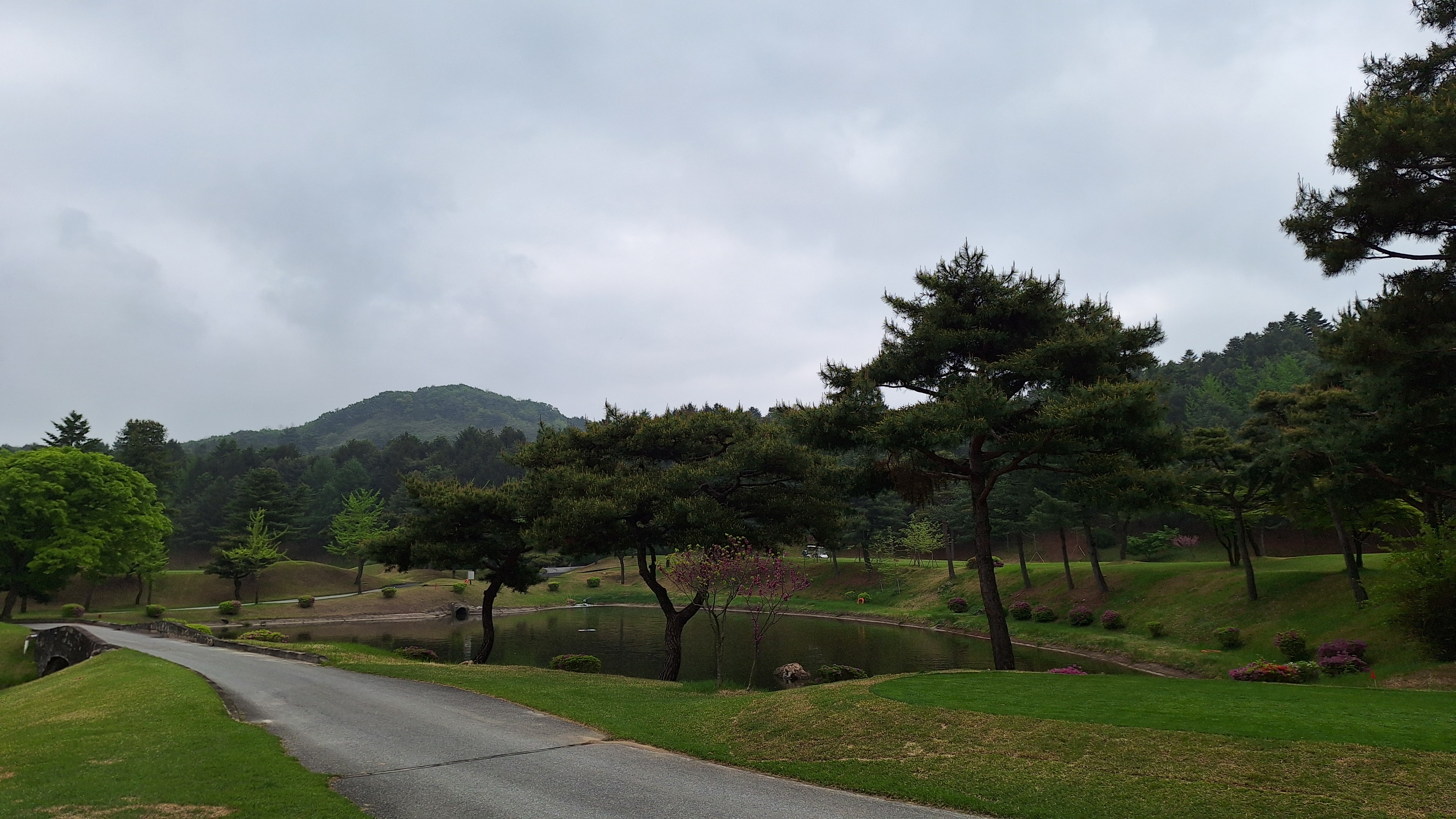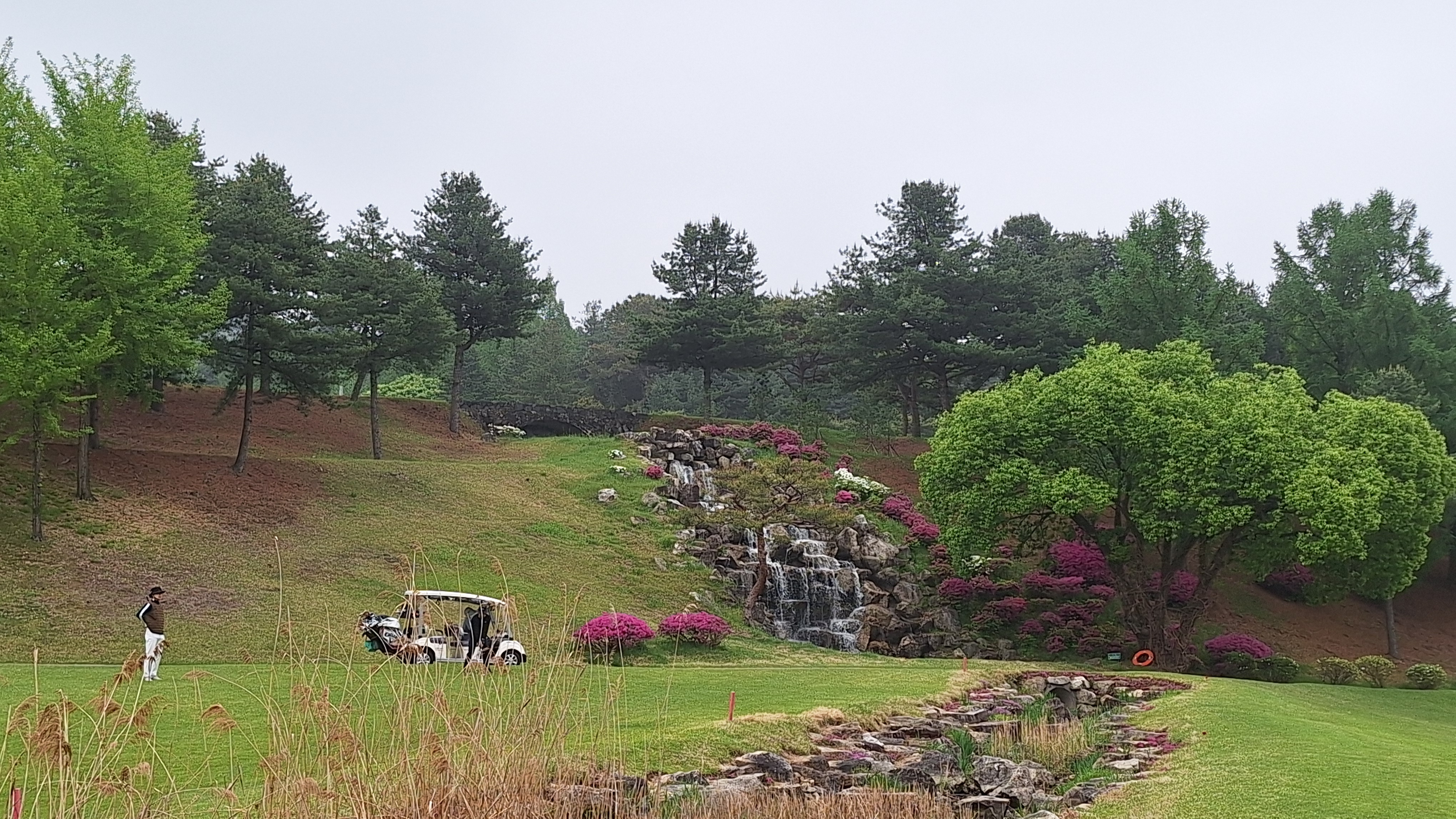 - 매우 뛰어난 조경은 아니지만 가끔 '아!! 예쁘다', '경치 좋네' 하는 곳이 보였다. 비싸 보이는 소나무가 많이 보였고 가끔 있는 연못, 작은 폭포같은 조경들이 예뻐보였다. 다른 골프장에는 자주 보이지 않는 조경수들이 많았다. 무엇보다 페어웨이가 넓고 쭉 뻗은 홀들이 많아서 눈이 편안했다.