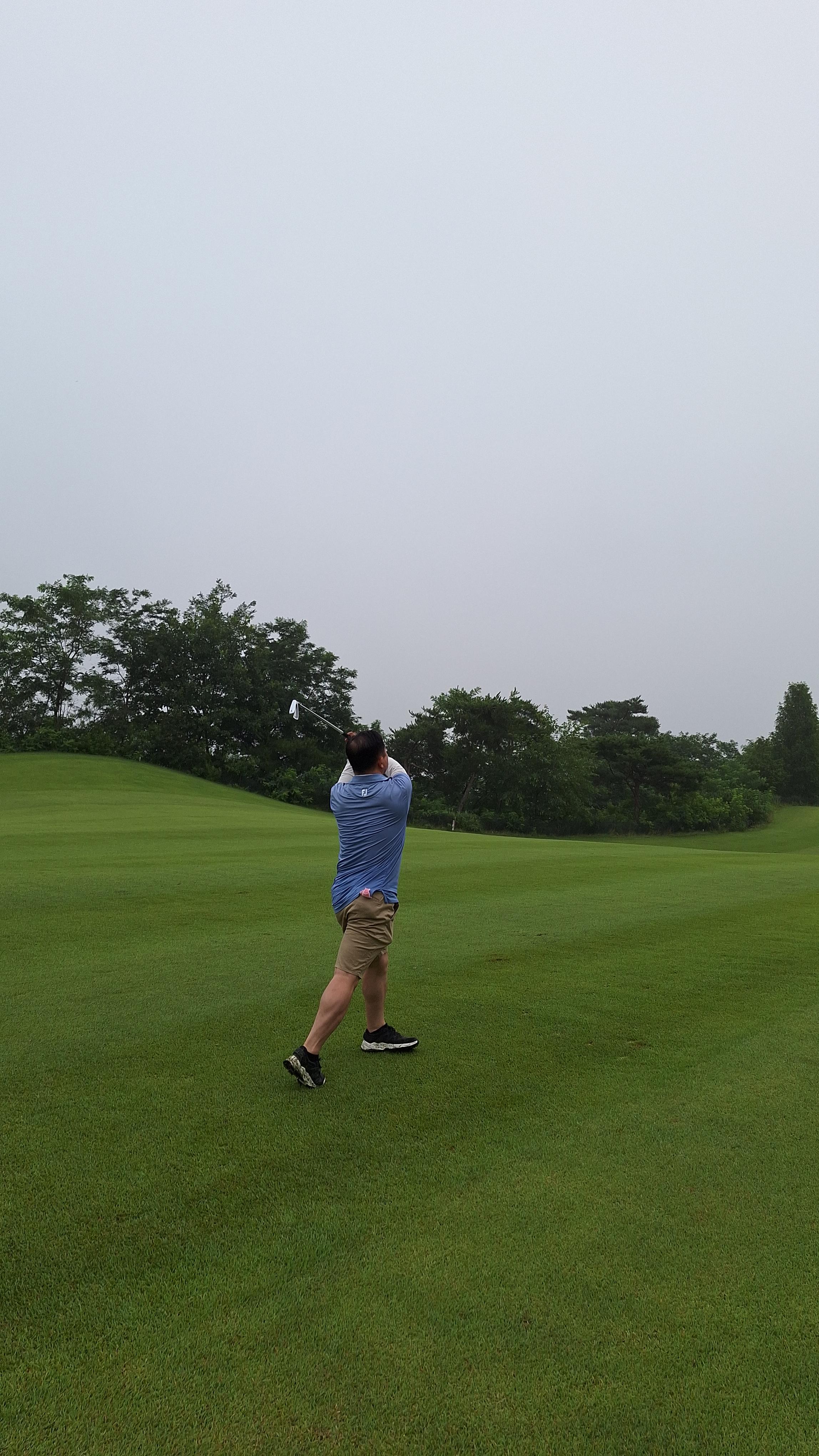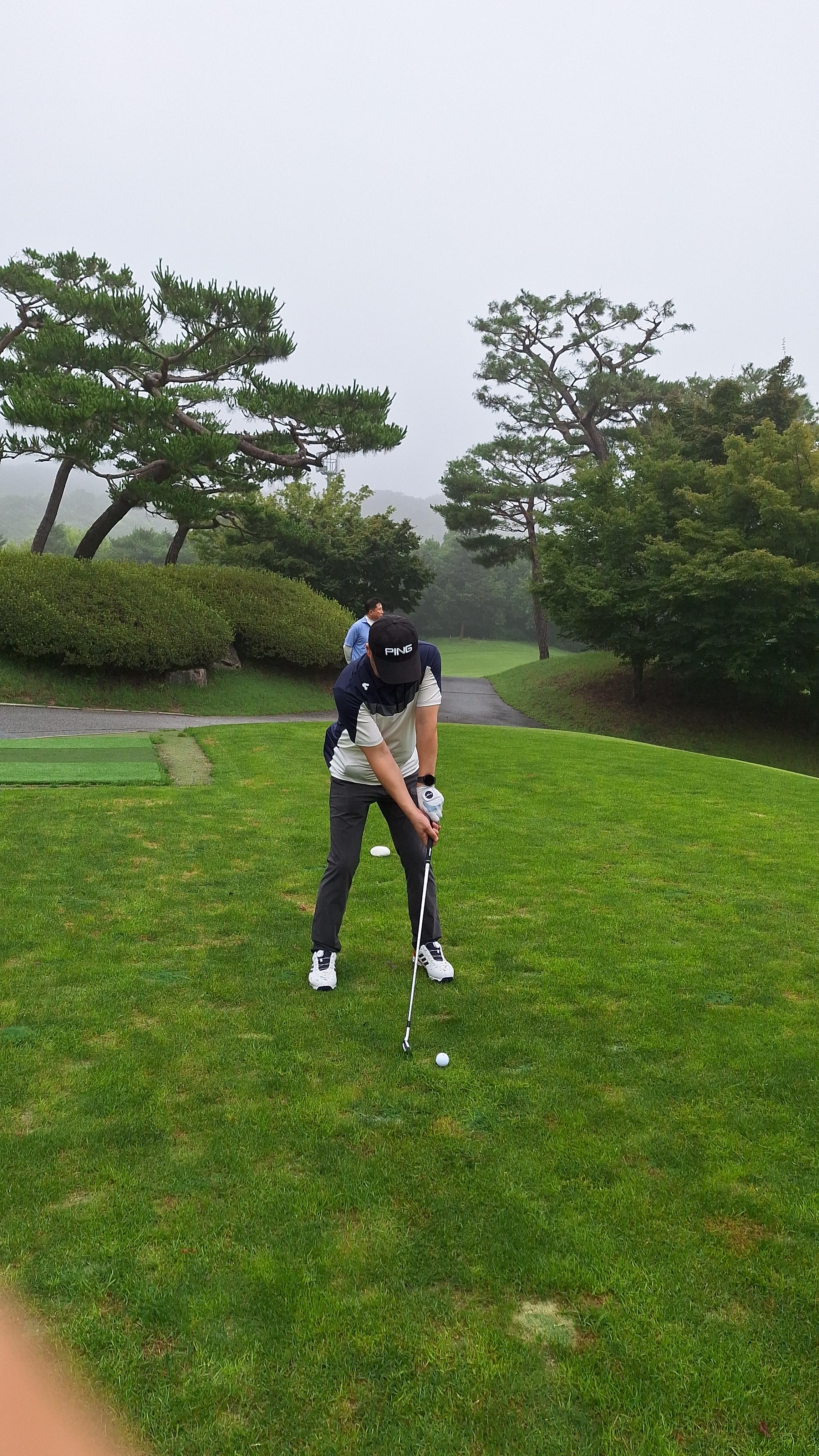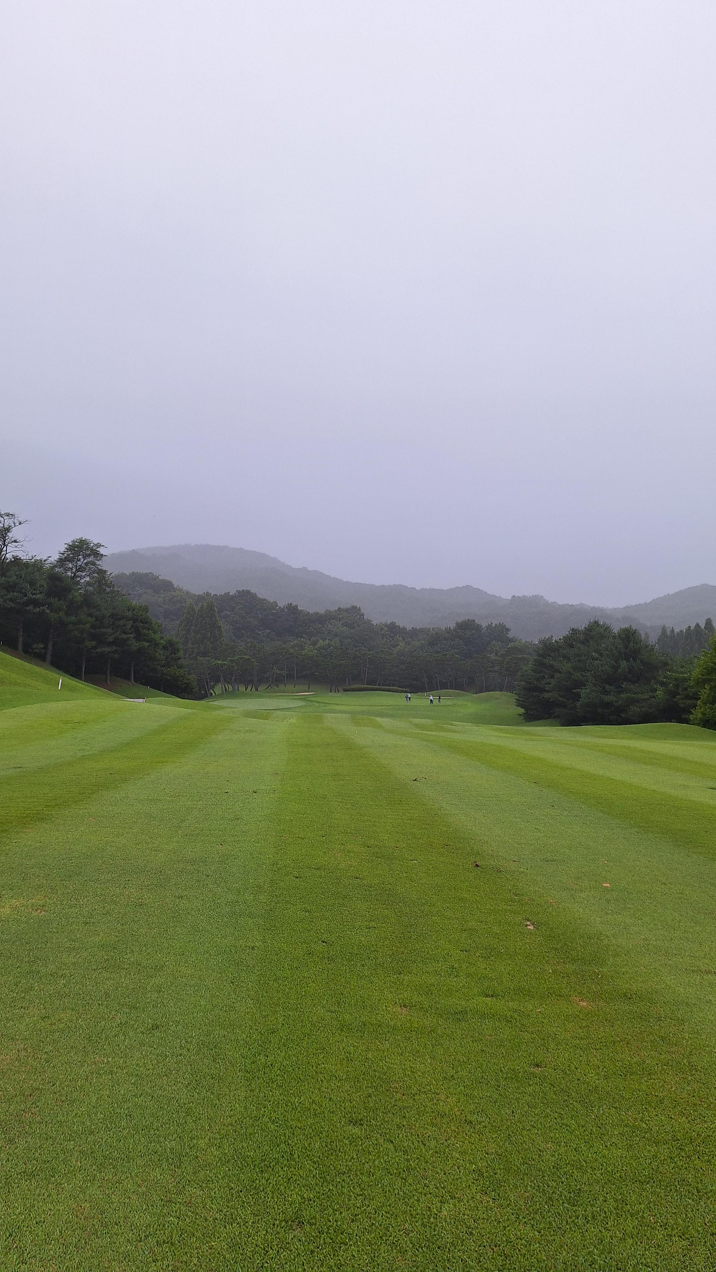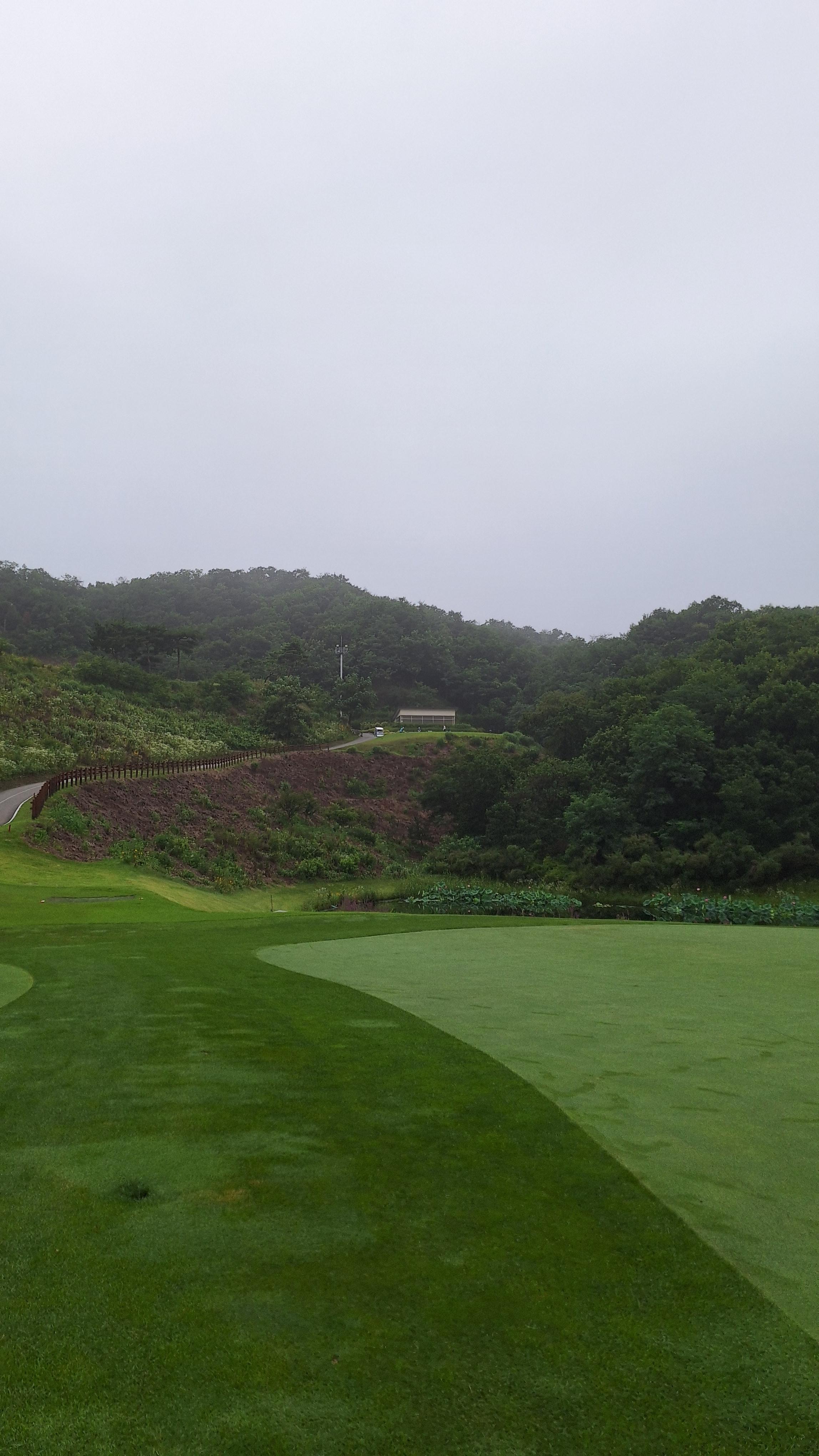 ㅇ 새벽 이슬을 머금은 그린, 전반전까지 안개비가 흩날린 상태의 그린, 안 구를 것 같은 그린이었는데, 각 홀마다 컨디션이 조금씩 달랐습니다. 이슬과 안개비로 약간 촉촉하지만 적당한 속도를 유지하고 있었습니다. 흔히 말하는 그린 스피드로 2.5~2.7 정도, 스크린에서 보통 빠르기 정도로 생각하고 플레이했습니다.
