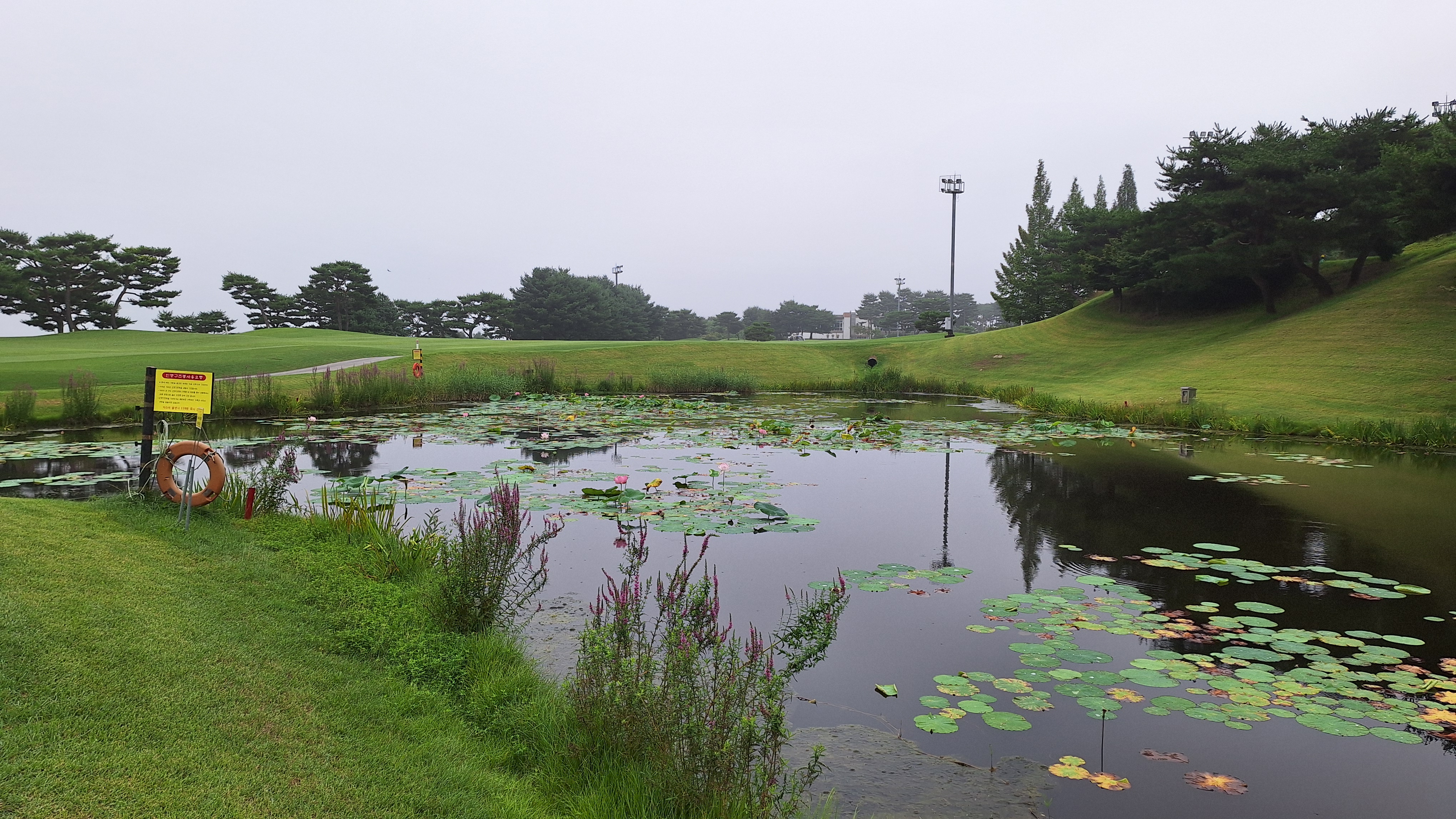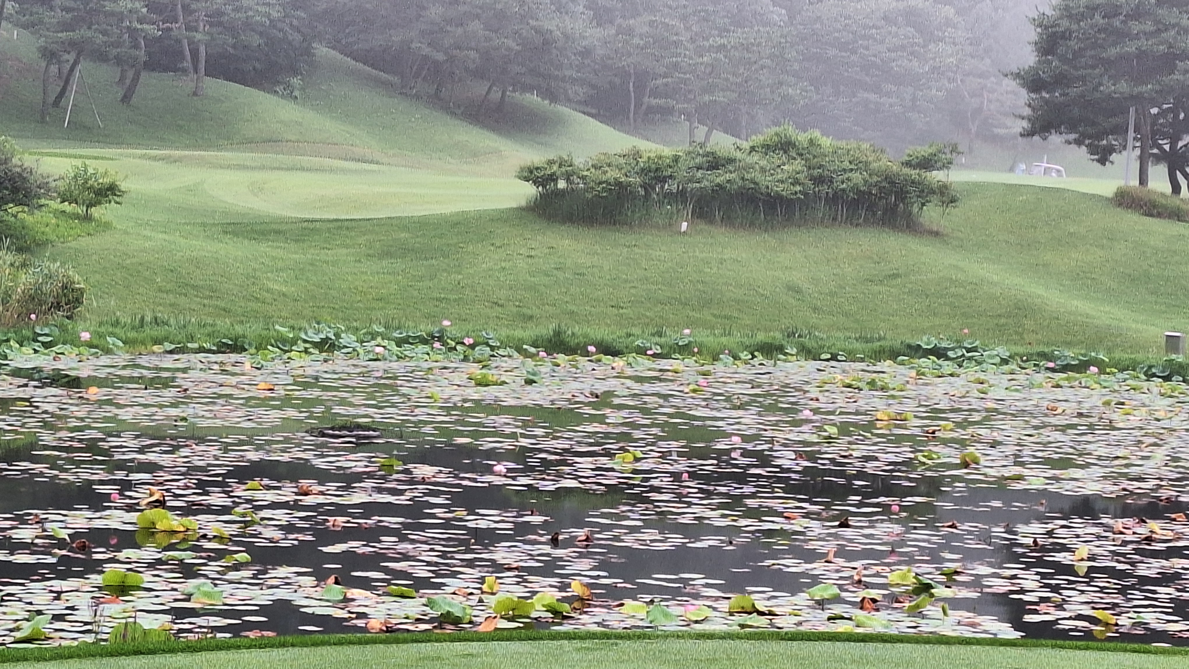 ㅇ 남여주CC는 평지에 조성이 되어 있어서 큰 나무가 그렇게 많지는 않지만, 헤저드가 많아서 하늘과 헤저드와 주위의 작은 나무들이 어우러져서 예쁜 경치가 있는 홀들이 많았습니다. 특히 헤저드에 연꽃들이 만개해서 자연스럽게 사진을 찍게 하는 경치였습니다.