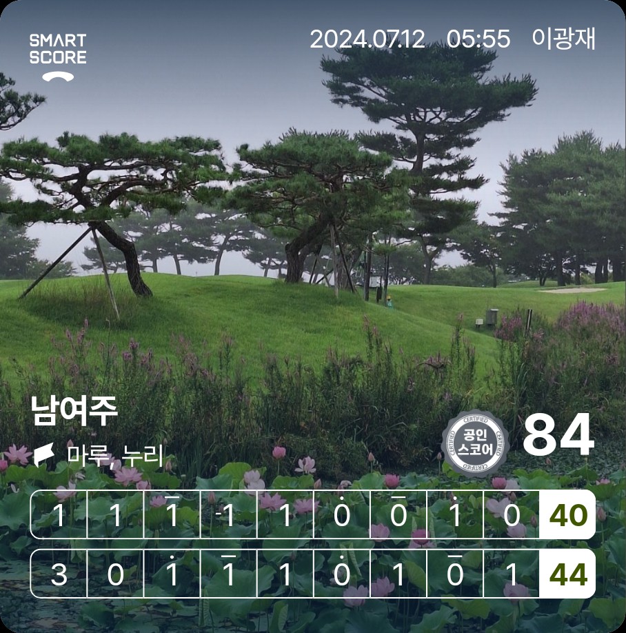 후반 플레이를 시작하면서 오늘 또 싱글을 한 번 해볼까 하는 마음을 먹고 힘이 들어갔는지, 10번 홀에서 오비를 내면서 트리플을 했습니다. 짜증도 나고 화도 났지만 마음을 다시 한번 다잡고 플레이를 했습니다. 다행이 드라이브는 12번 홀부터 다시 잡혔고, 아이언을 빼고는 모든 샷들이 안정적으로 플레이되어 전후반 total 12 over, 84타로 플레이를 마쳤습니다.