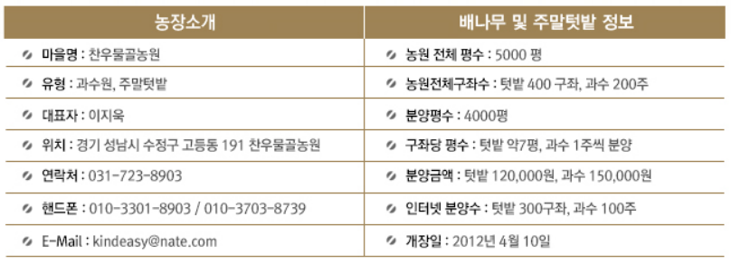 [홈페이지에 있는 찬우물골주말농장 정보]