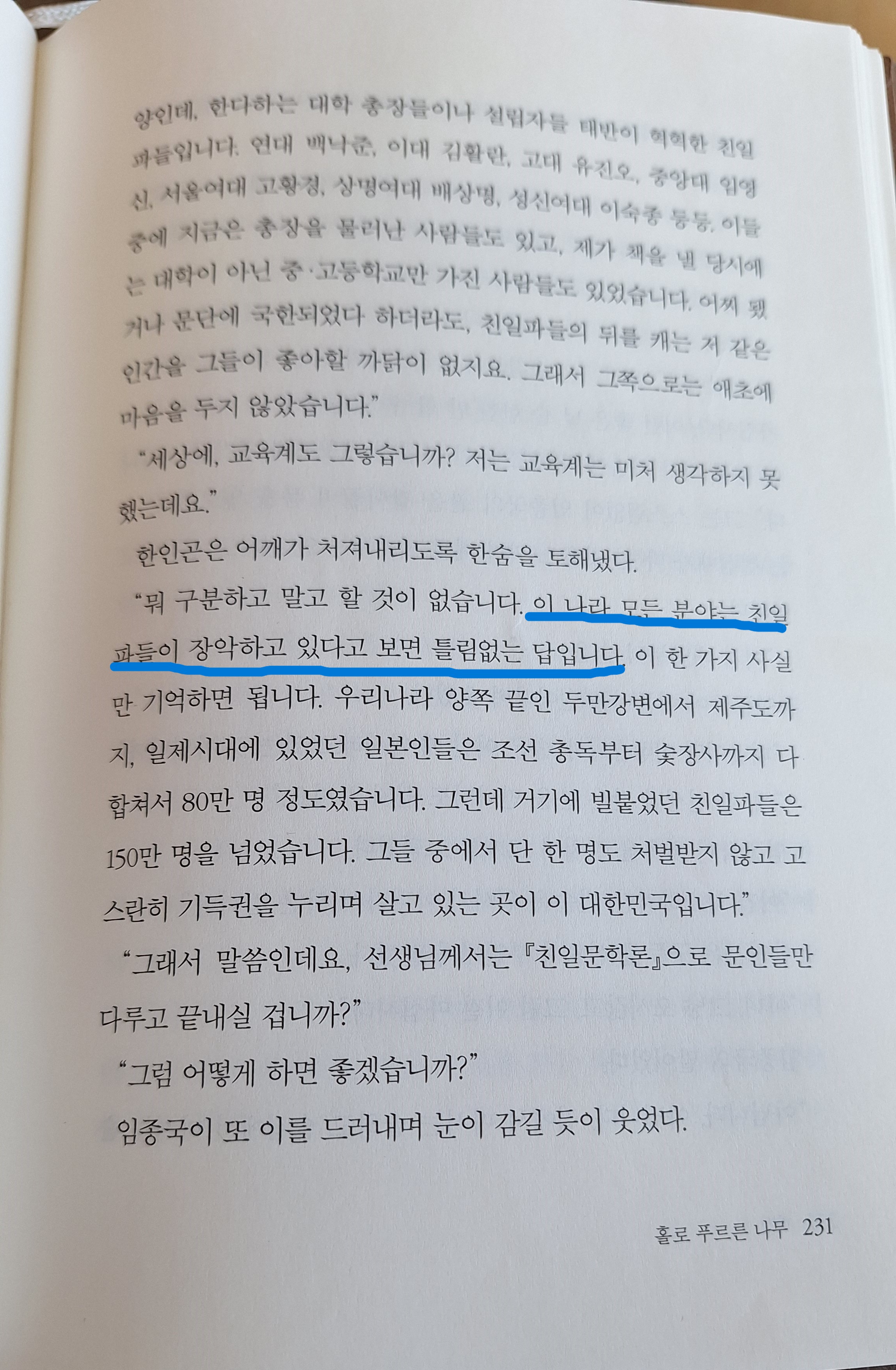 (우리의 아픈 이야기) 일본에게 나라를 빼앗기고 독립군들이 대한민국의 독립을 위해 만주, 중국 등에서 목숨을 걸고 싸웠고 마지막 총 공격으로 일본으로부터 나라를 찾고자 했다. 그런데 2차 세계대전에 참여한 미국의 원자폭탄투하로 갑자기 맞이하게 된 광복, 독립군이 주도 세력이 아니라 미 군정이 주도 세력이 되어버린 슬픈 현실이었다. 미군정은 대한민국을 미국의 친위세력으로 만들기 위해 정리해야 할 친일파를 다시 기용했다. 현대사회로 넘어가면서 새로운 나라의 기반을 만들었어야 할 시기에 일본에 기생했던 친일파가 다시 미국에 기생했다. 대한민국을 주도하는 기득권 세력이 친일파로 채워지는 슬픈 역사가 시작됐다. 이 기득권에 붙어 먹는 또 다른 기득권도 모태는 친일파이다. 청산하지 못했던 과거는 일본을 옹호하고, 우리 역사를 부정하고, 피해자인 정신대 할머니들을 조롱하는 현재가 되었다.