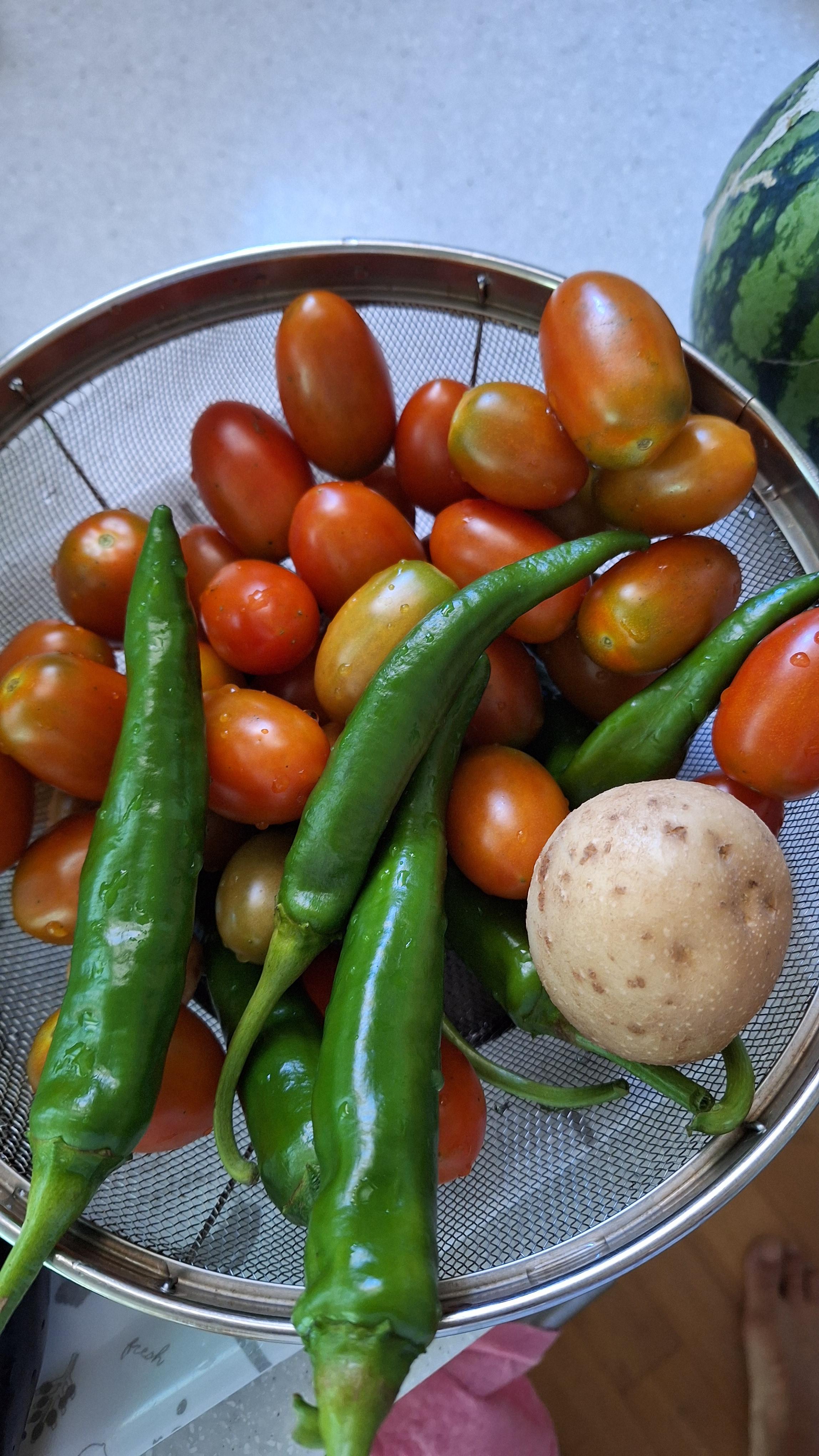 # 방울토마토, 호박, 고추, 가지를 수확했습니다.
