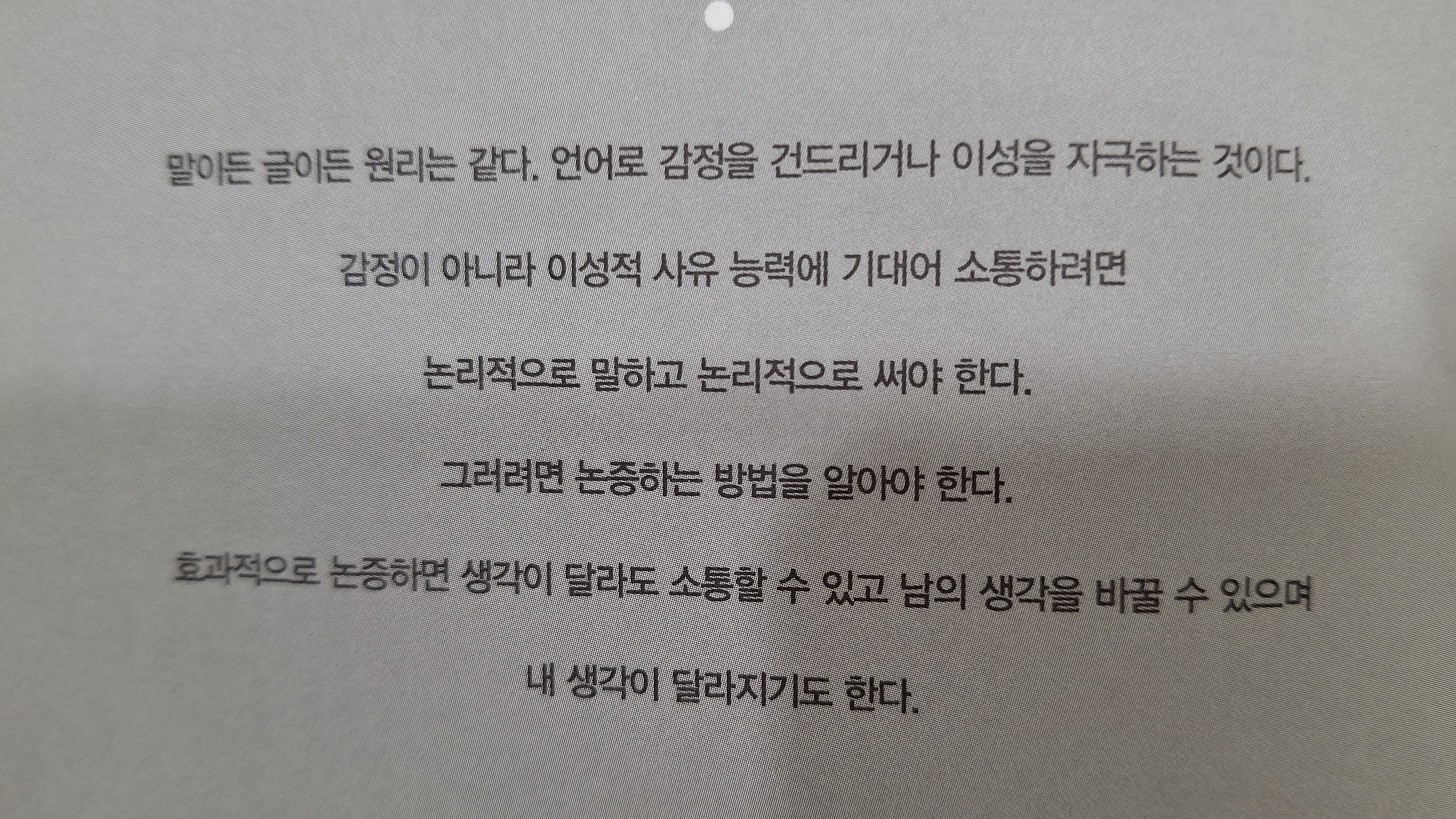 (논리 글에서 중요한 것은) 화려함과 기교가 아니라 뜻을 간결하고 정확하게 전달하는 문장의 힘과 효율성이다.