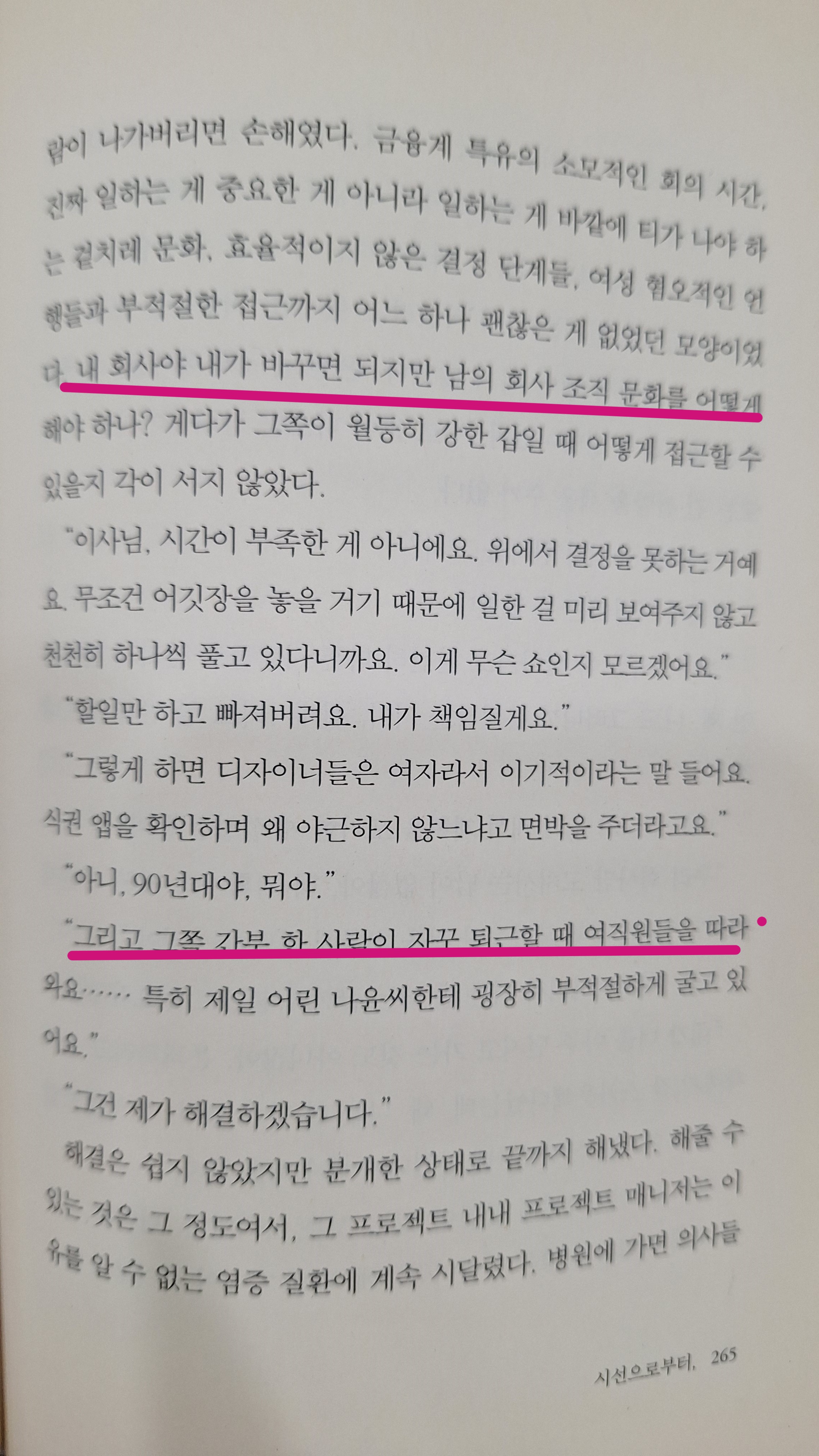 피프티피플을 읽고 나서 '글을 참 재밌게 쓰는 작가네', '책을 읽으면 손에서 놓기가 싫네' 라는 생각을 했었다. 그리고 정세랑 작가를 잊고 있었는데, 이번에 시선으로부터 책을 읽고 '역시'라는 생각이 들었다. 정세랑 작가가 바라보는 세상에 대한 시선과 감정이 내가 생각하는 것과 비슷해서 '그렇지' 하면서 더 재밌게 읽었던 것 같다. 할머니 심시선의 이야기와 그 가족들의 삶이 읽는 동안 재밌고 흥미진진했다. 책을 읽는 동안 내내 딸이 7살 때 가족이 방문한 하와이의 기억을 되새기며 책을 보는 것도 즐거웠다. 정세랑 작가의 책을 찾아서 다시 읽고 싶다.