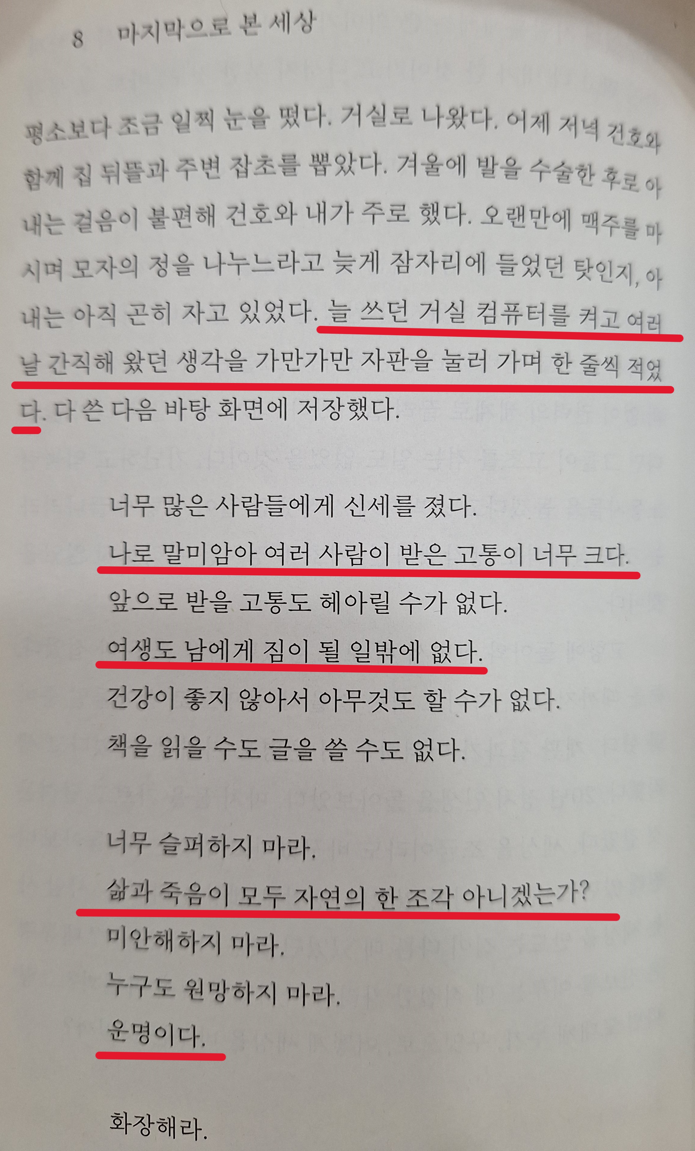 여생도 남에게 짐이 될 일밖에 없다.