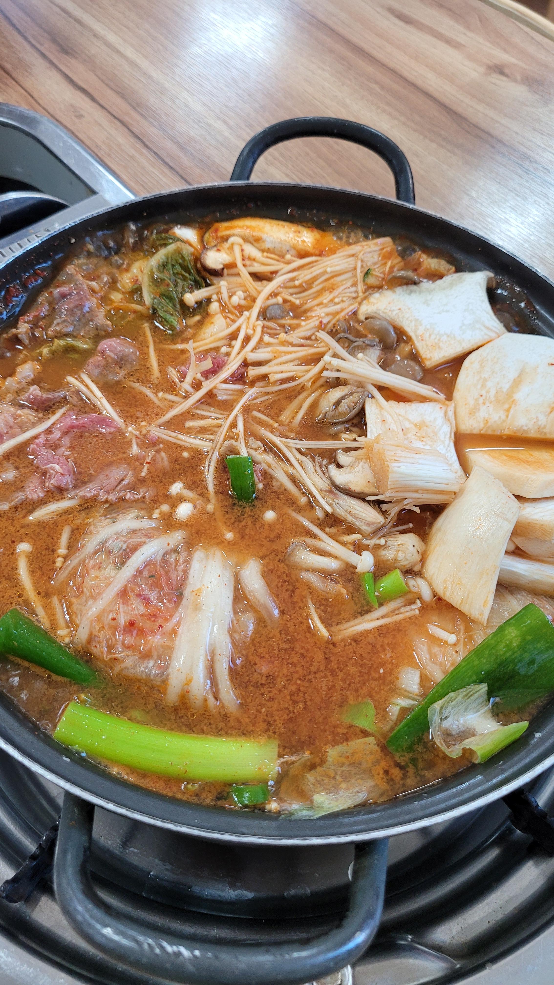 메뉴는 아래처럼 많지만, 김치만두전골 추천한다. 찐만두 2개가 서비스로 나온다.